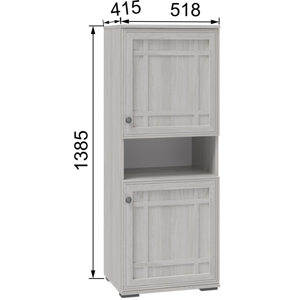 Шкаф-пенал «Ричард», выполненный в едином стиле всей коллекции, представляет собой компактный и функциональный шкаф с пятью полками. Конструкция с двумя распашными дверцами, размещёнными одна над другой, предусматривает открытую нишу между ними. Такое решение позволяет удобно хранить предметы повседневного пользования или использовать пространство для размещения декоративных аксессуаров, подчёркивающих индивидуальность интерьера.