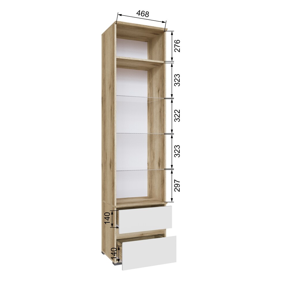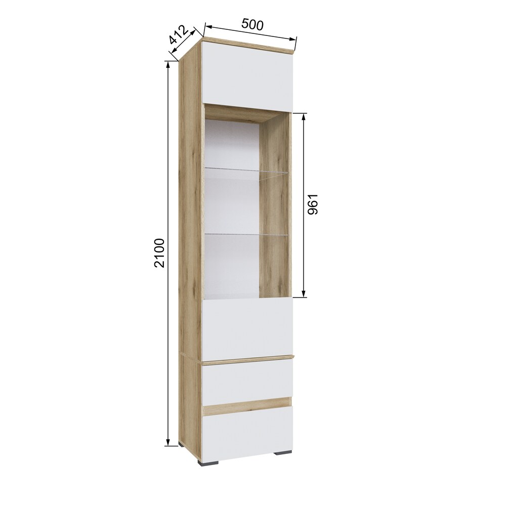 Пенал с витриной Плейона отлично дополнит Вашу гостиную. Стеклянная дверца позволит представить на обозрение коллекцию посуды, бокалов или памятные награды и кубки. В выдвижных ящиках Вы расположите вещи, аксессуары и другие нужные мелочи.