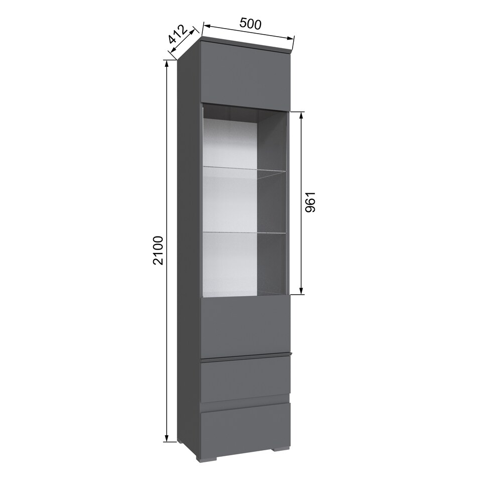 Пенал с витриной Плейона отлично дополнит Вашу гостиную. Стеклянная дверца позволит представить на обозрение коллекцию посуды, бокалов или памятные награды и кубки. В выдвижных ящиках Вы расположите вещи, аксессуары и другие нужные мелочи.