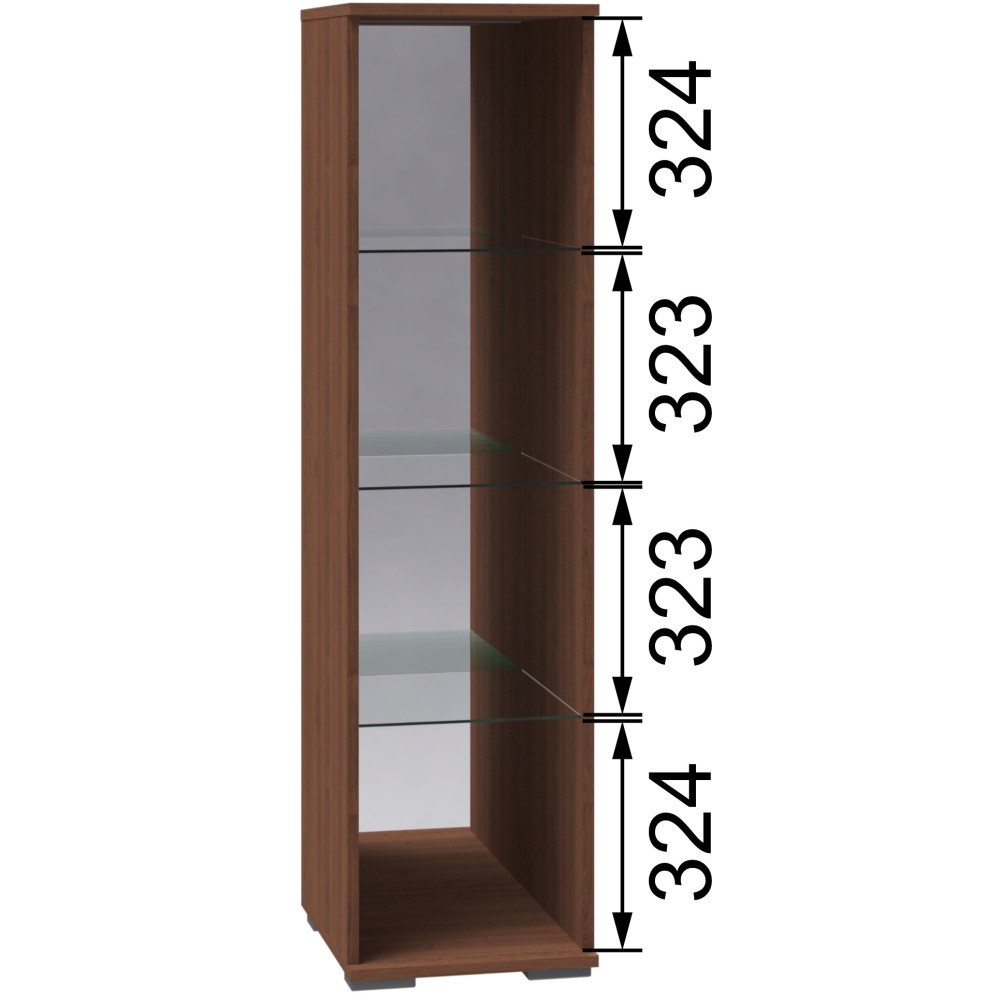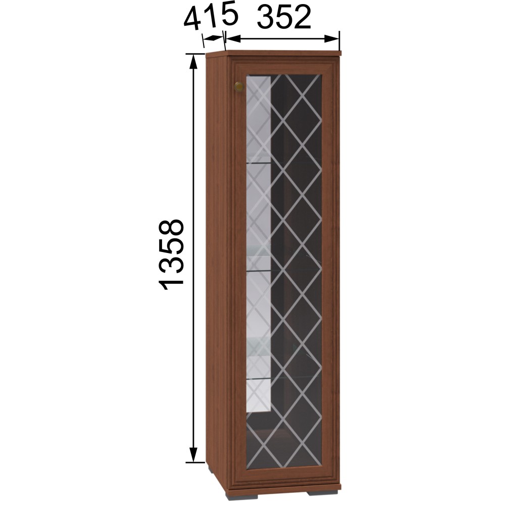 Шкаф-пенал «Ричард», выполненный в единой стилистике коллекции, представляет собой высокий и компактный шкаф с двумя распашными дверцами, расположенными одна над другой. В верхнем отделении, закрытом витринной дверью с декоративным гравированным стеклом, размещены три стеклянные полки, а зеркальная задняя стенка визуально расширяет пространство и усиливает эффект лёгкости. Ниже предусмотрена открытая ниша, удобная для хранения предметов, к которым требуется быстрый доступ. В нижней части шкафа за глухой распашной дверью скрыты ещё две полки для аккуратного размещения вещей.