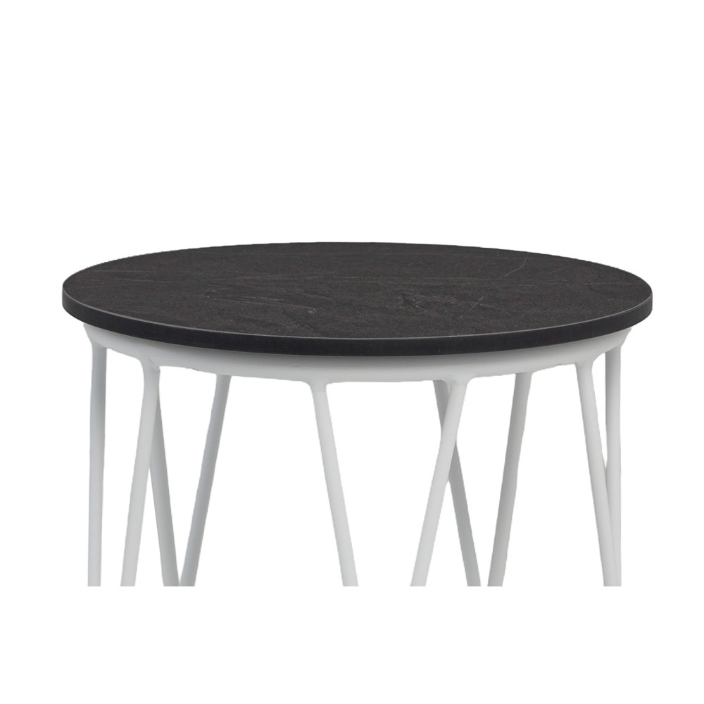 "Перу" журнальный стол из HPL круглый Ø40 H55, каркас из алюминия белый (RAL 9016) муар, цвет столешницы "серый мрамор"