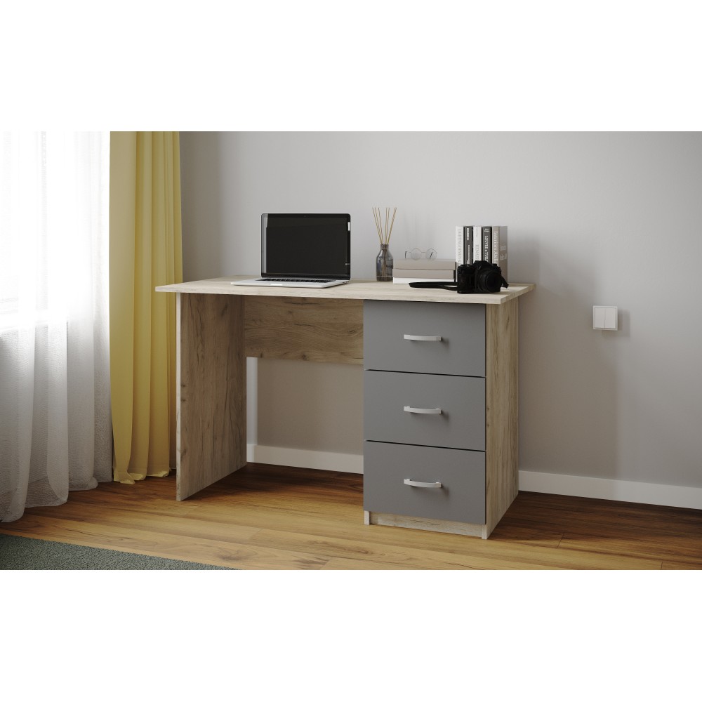 Письменный стол из серии Сити-1 — универсальный вариант обустройства домашней рабочей зоны. Прекрасно подойдет как для школьника, так и для взрослого человека. Модель привлекает универсальным белым декором, который будет актуально смотреться в любом по стилю интерьере. Необходимые для учебы или работы вещи Вы сможете расположить в трех вместительных ящиках, которые оснащены роликовыми направляющими. Ручки пластиковые цвета «металлик». Ширина столешницы в 120 см делает модель комфортной для ежедневной эксплуатации.