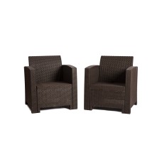 Комплектация и габариты: Кресло(2 шт.) - 68х66х76 см Кофейный стол - 70,5х50,5х38,5 см Материалы: Материал комплекта - окрашенный в массе полипропилен с повышенной прочностью Цвет комплекта - коричневый Цвет подушек - бежевый Материал ..