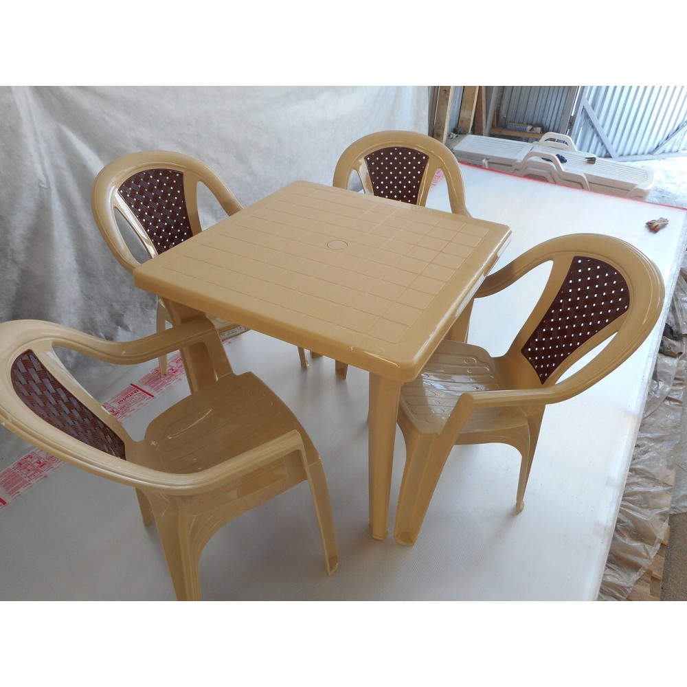 Комплект пластиковой мебели (стол квадратный Дублин 800х800 бежевый + 4 кресла Элен бежевых с коричневой вставкой)