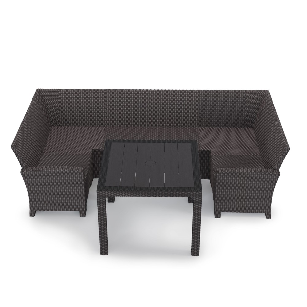 Привлекательный и стильный П-образный диван из пластика с искусственной имитацией ротанга - идеальное решение для вашего современного интерьера! Этот угловой диван рассчитан на 6 человек и представляет собой отличное сочетание удобства, функциональности и эстетики.