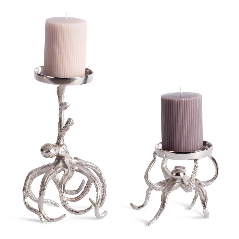 Изысканный подсвечник Secret De Maison OCTOPUS4 из коллекции SILVER, декорированный осьминогами, сочетает в себе винтажное очарование и современный дизайнерский креатив. Необычный предмет интерьера создаст атмосферу уюта и роскоши в любом помещении вашего дома. Уникальный подсвечник из алюминиевого сплава выполнен в цвете никель (Nickel), что придает ему ноту великолепия и элегантности. Эта красивая вещь станет центральным элементом в интерьере спальни, гостиной или столовой. Алюминиевый сплав не требует специального ухода и сложной чистки, будет восхищать вас своим первоначальным видом долгие годы.
