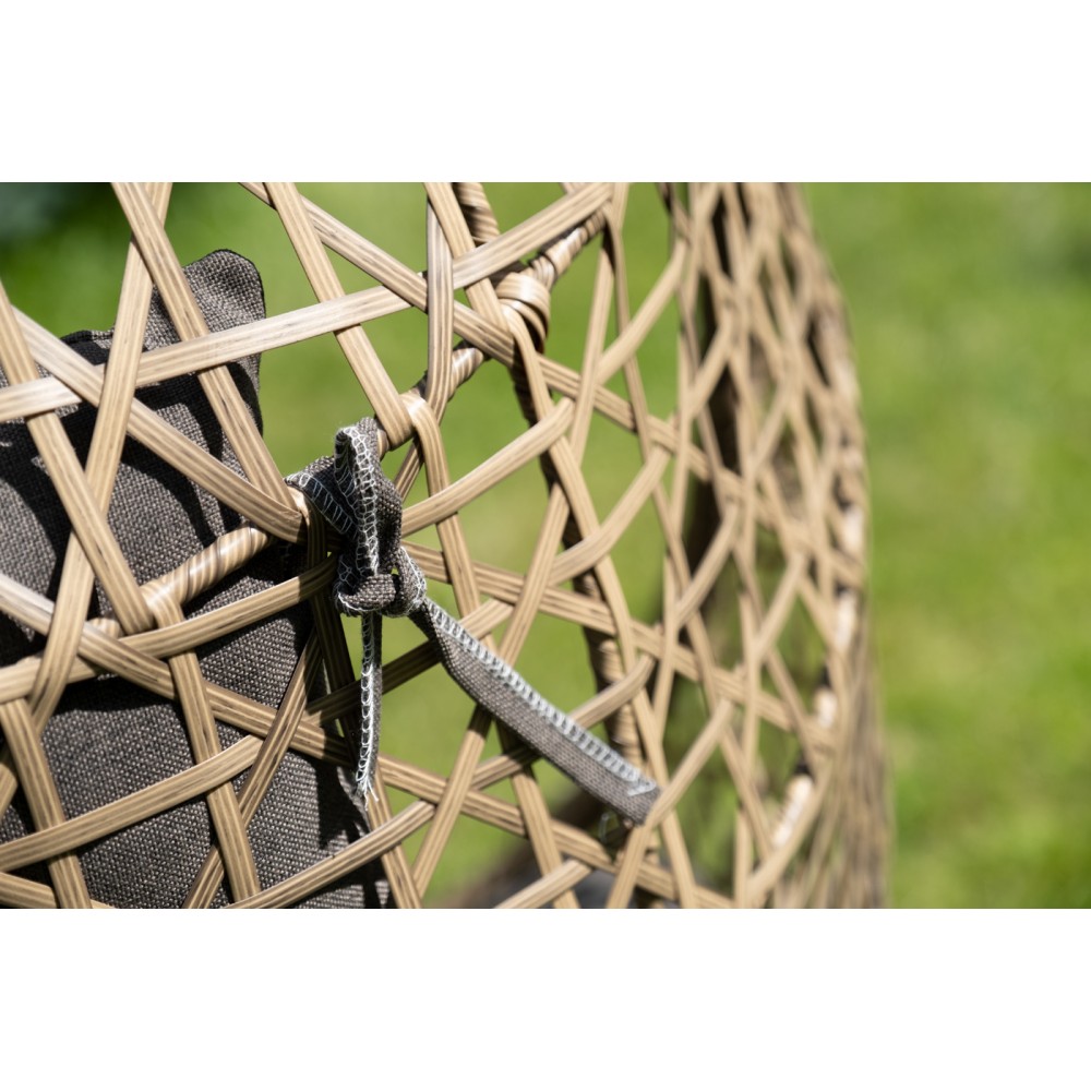 Уютное садовое кресло-кокон «Флоренция» для организации лаунж-зоны. Основание изготовлено из стали окрашенного порошковой износостойкой краской белого оттенка, вручную оплетенного плоским искусственным ротангом соломенного цвета. Этот материал не боится перепадов температуры, прямых солнечных лучей, дождя и ветра.