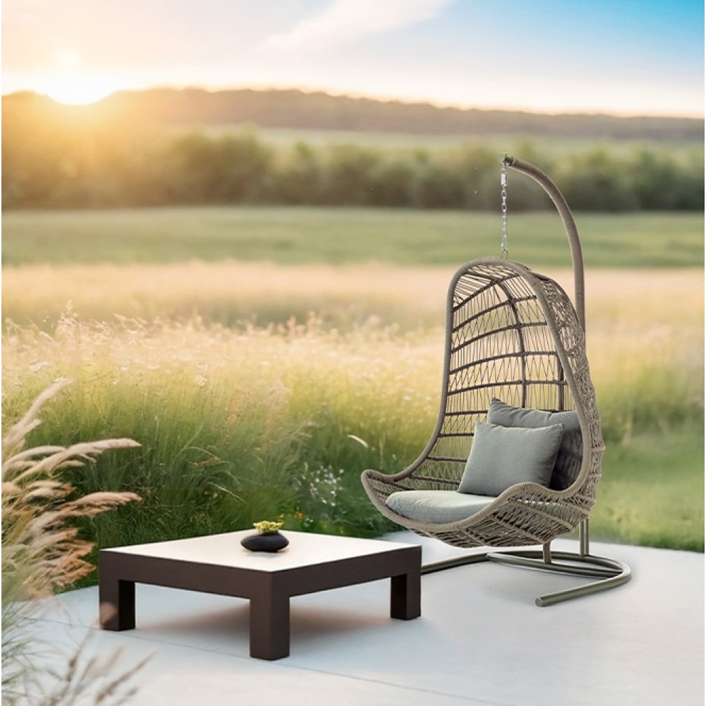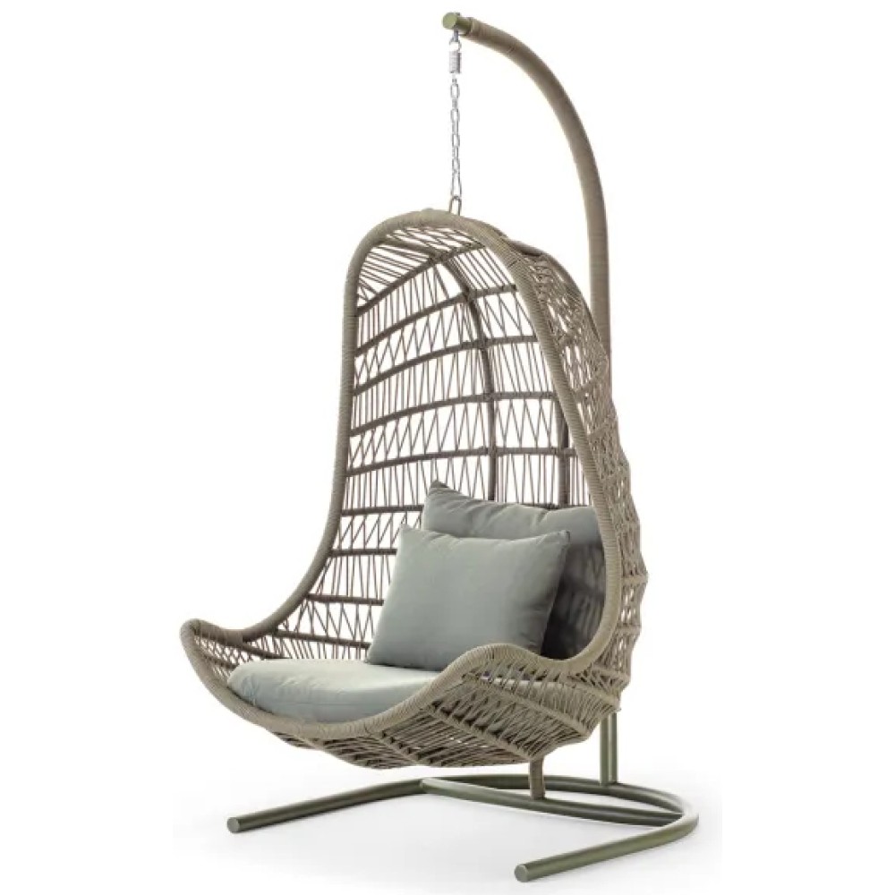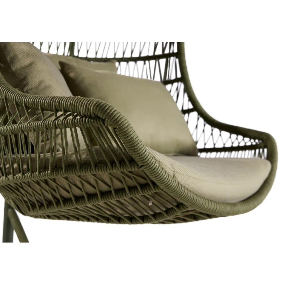 Данная продукция возится только под заказ с фабрики по предоплате. Leaf - стильное подвесное кресло, сочетающее в себе максимальный комфорт и современный дизайн. Прочная алюминиевая рама обтянута высококачественным, водонепроницаемым текстильным канатом, что придает креслу воздушность и элегантность. Просторное сиденье со съемными подушками из олефина и быстросохнущим наполнителем Quick Dry Foam обеспечивает особый комфорт. Идеально подходит для отдыха в саду, на террасе или в гостиной.