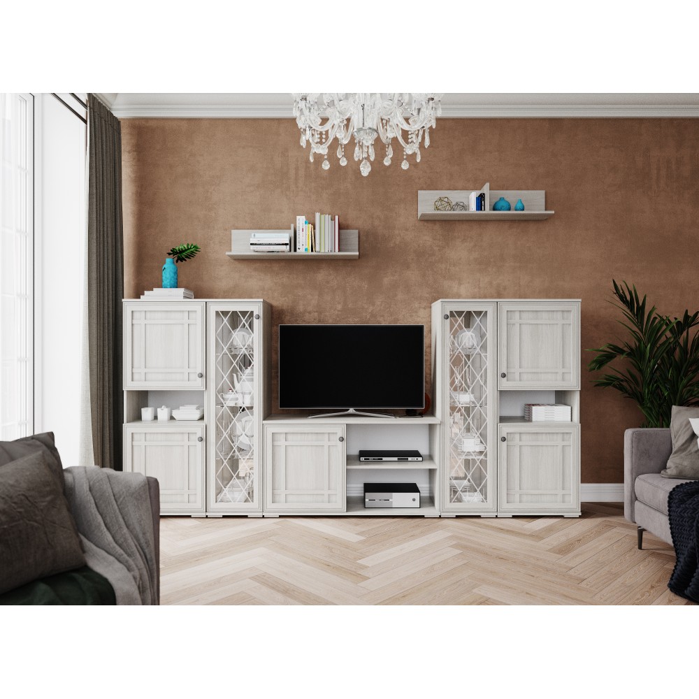 Благодаря открытым секциям полка визуально не утяжеляет интерьер, создавая ощущение легкости и простора. Она отлично подойдёт для размещения декоративных элементов, книг, фоторамок, комнатных растений или предметов повседневного использования, позволяя держать всё необходимое под рукой и одновременно подчёркивать индивидуальность интерьера.