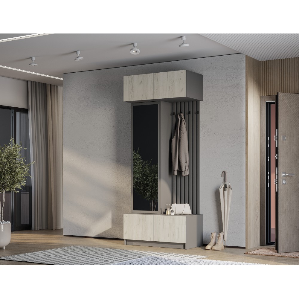 Стильная и компактная прихожая «Багира» – это оптимальное сочетание открытых и закрытых зон для хранения верхней одежды, головных уборов, обуви и аксессуаров.