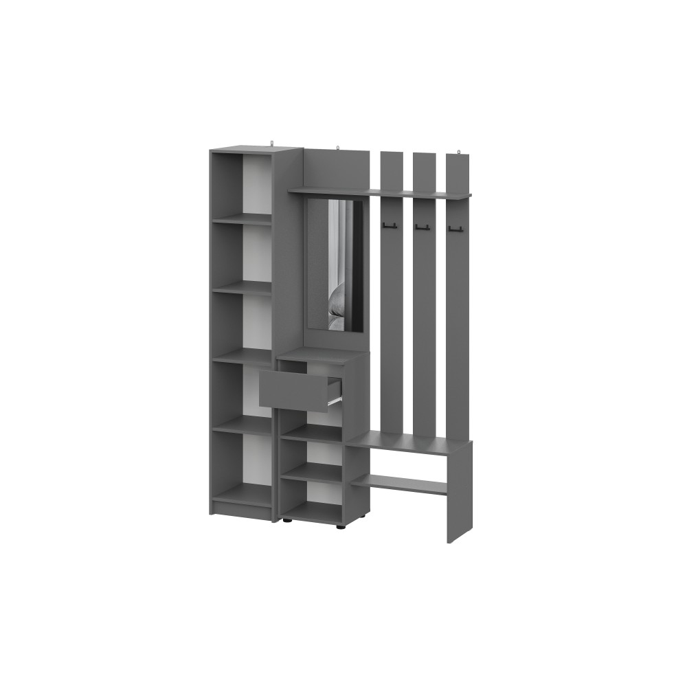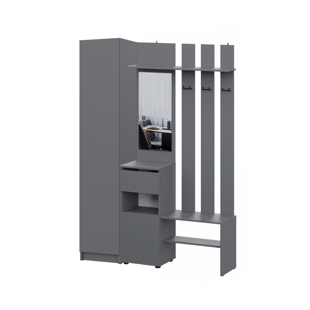 Просторная и светлая прихожая Бали создаст приятное первое впечатление при входе в квартиру. Здесь достаточно места для хранения верхней одежды, обуви и аксессуаров — предусмотрены шкафы и удобные полки. Прихожая в цвете "графит" подойдёт под любой стиль интерьера, а качественные материалы обеспечивают долговечность и лёгкость в уходе. Это пространство идеально подойдёт для тех, кто ценит чистоту, порядок и функциональность с первых шагов в доме.