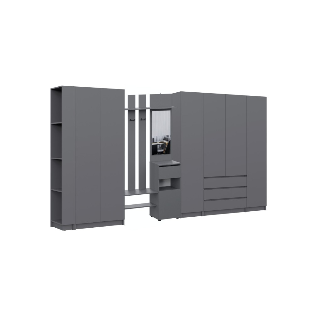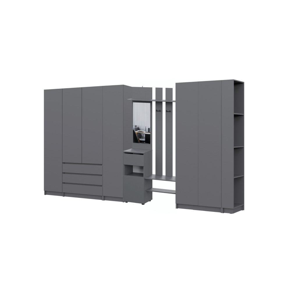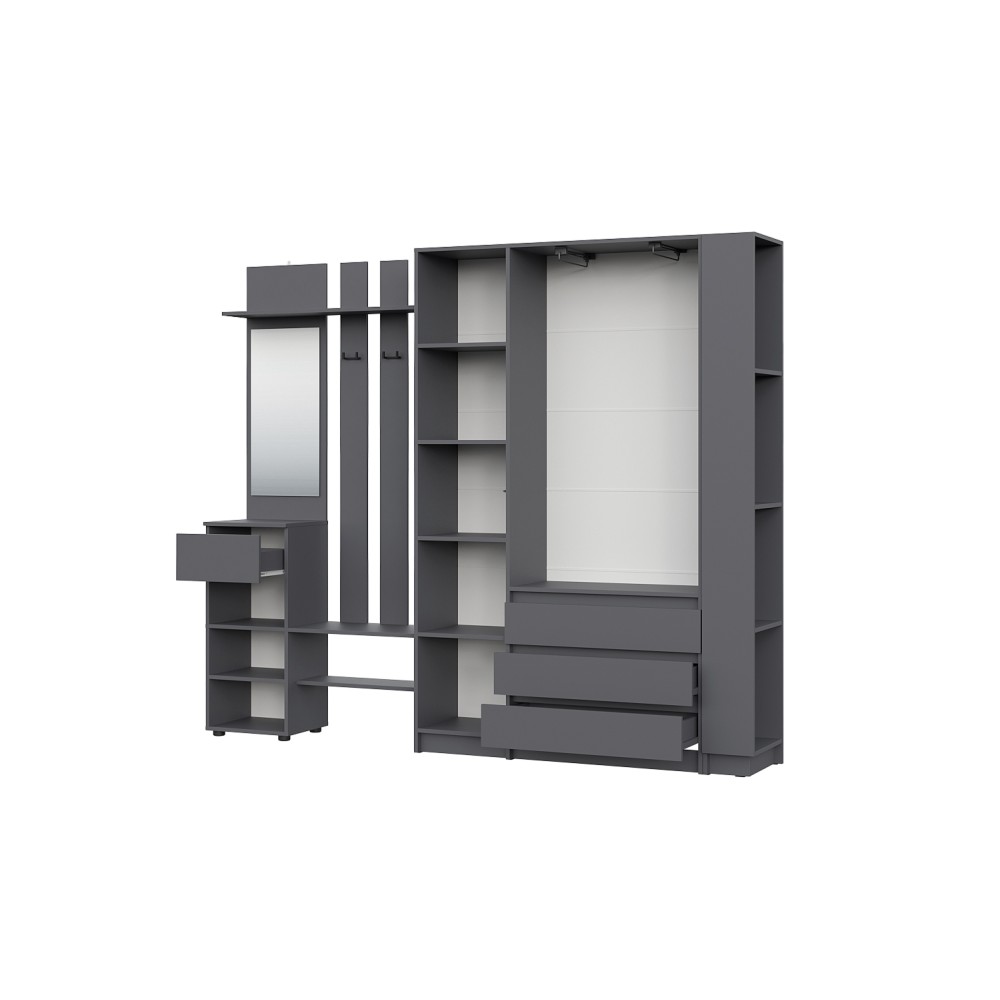 Просторная и светлая прихожая Бали создаст приятное первое впечатление при входе в квартиру. Здесь достаточно места для хранения верхней одежды, обуви и аксессуаров — предусмотрены шкафы и удобные полки. Прихожая в цвете "графит" подойдёт под любой стиль интерьера, а качественные материалы обеспечивают долговечность и лёгкость в уходе. Это пространство идеально подойдёт для тех, кто ценит чистоту, порядок и функциональность с первых шагов в доме.