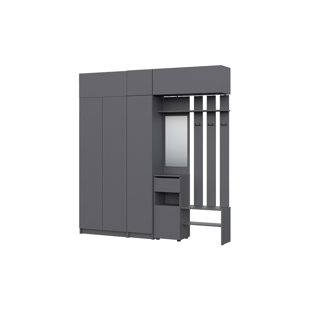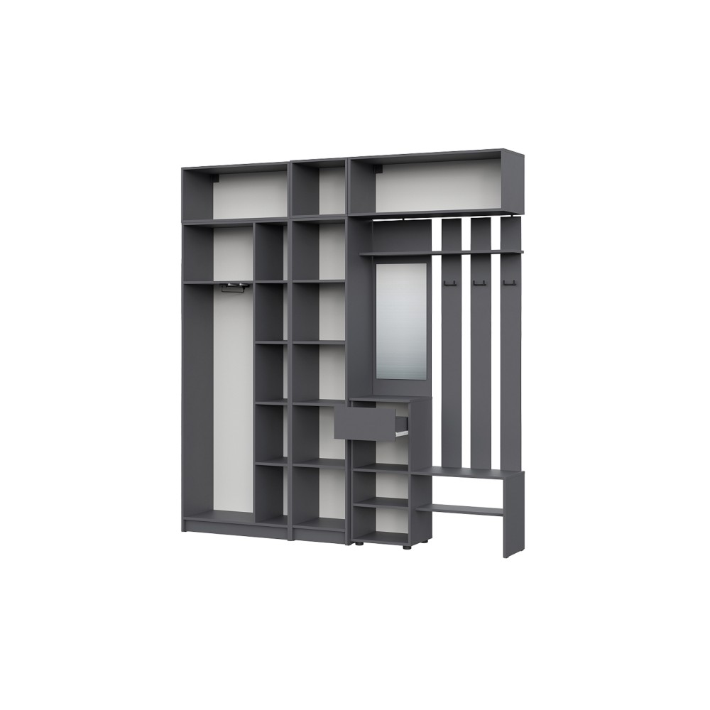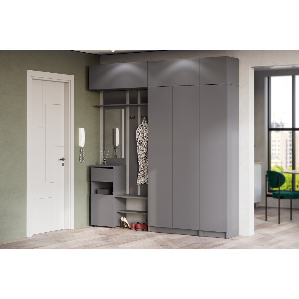 Просторная прихожая Бали создаст приятное первое впечатление при входе в квартиру. Здесь достаточно места для хранения верхней одежды, обуви и аксессуаров — предусмотрены шкафы и удобные полки. Прихожая в цвете "графит" подойдёт под любой стиль интерьера, а качественные материалы обеспечивают долговечность и лёгкость в уходе. Это пространство идеально подойдёт для тех, кто ценит чистоту, порядок и функциональность с первых шагов в доме.