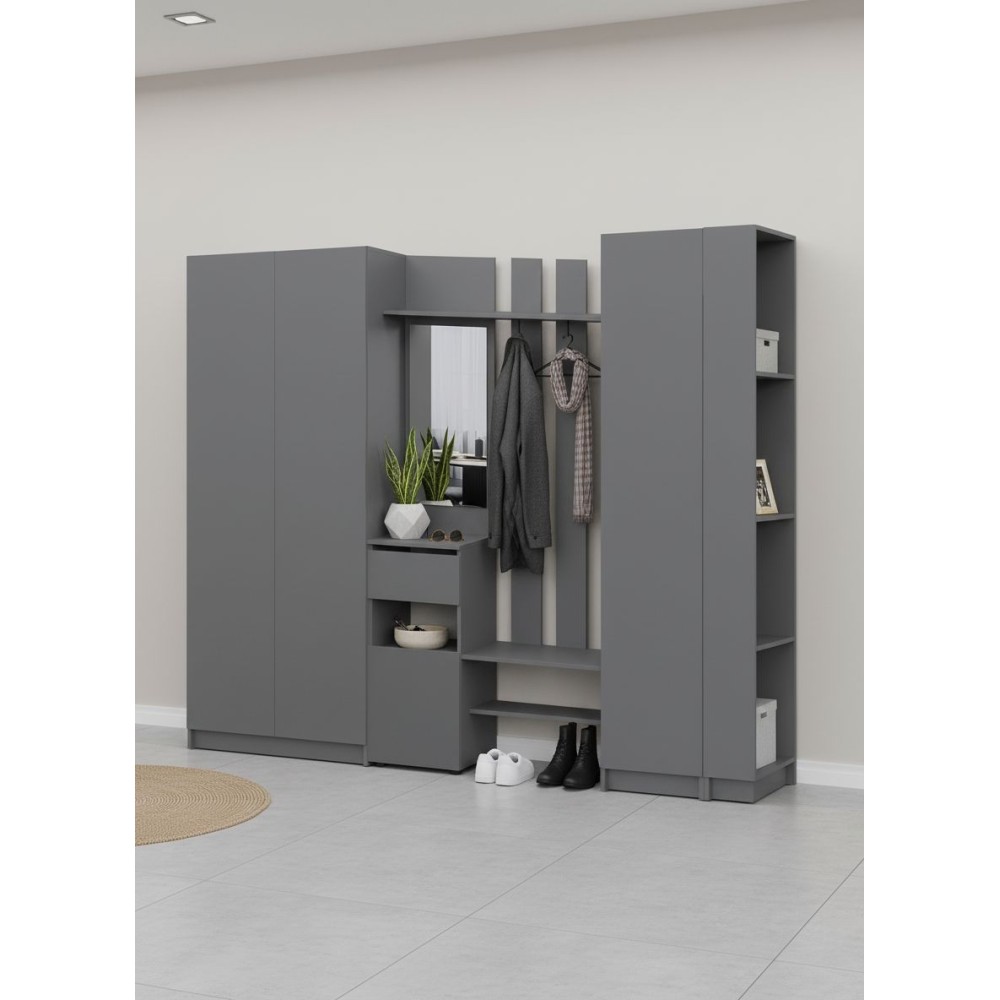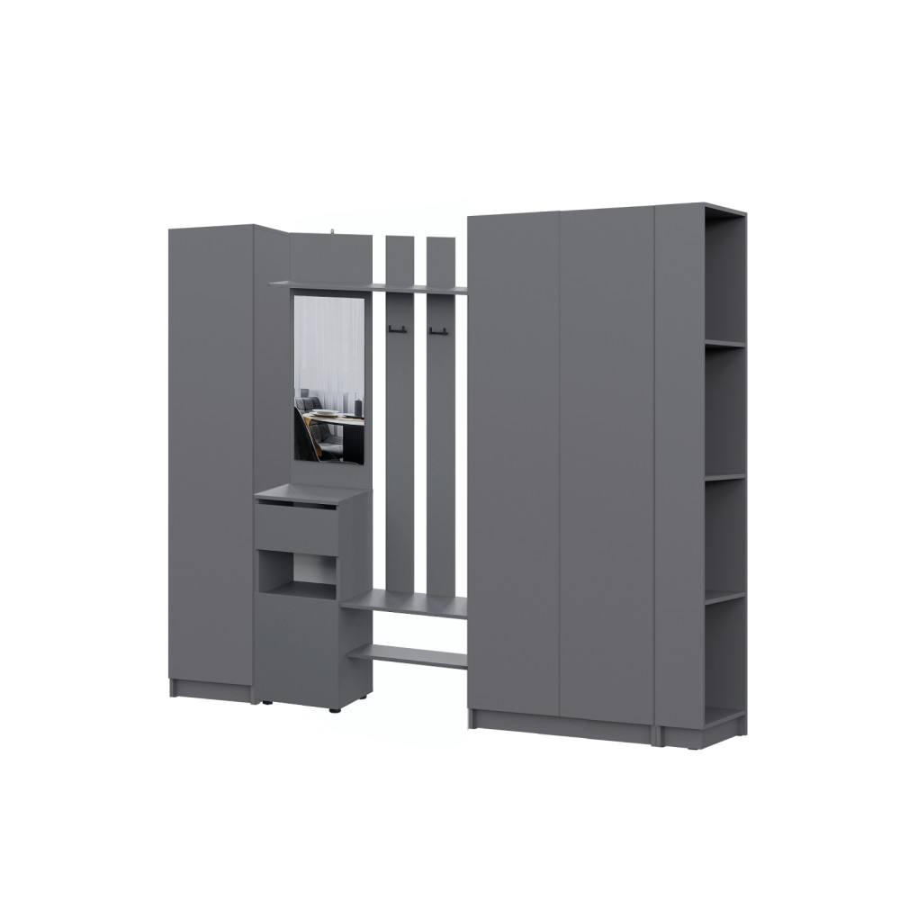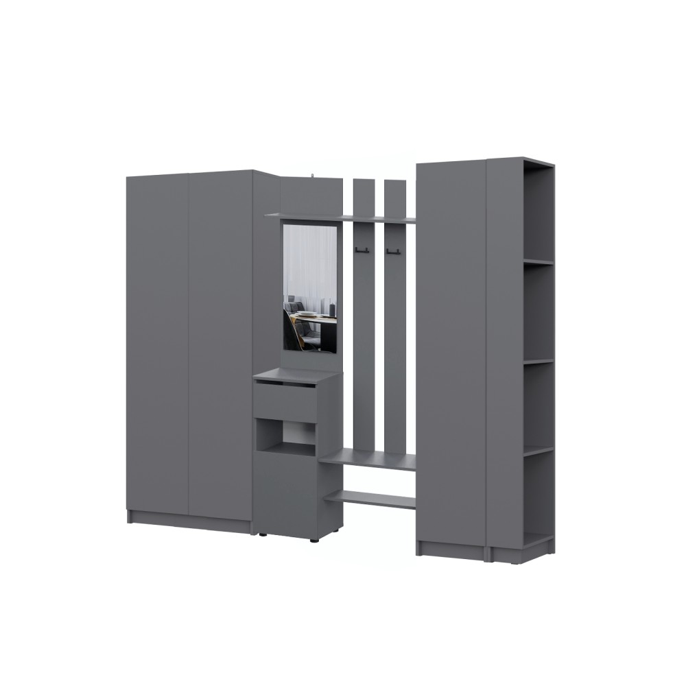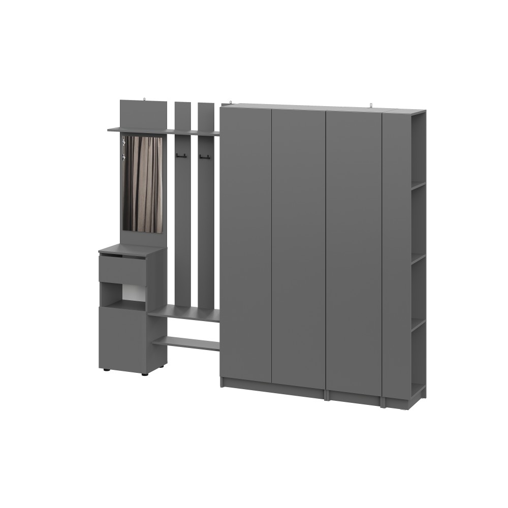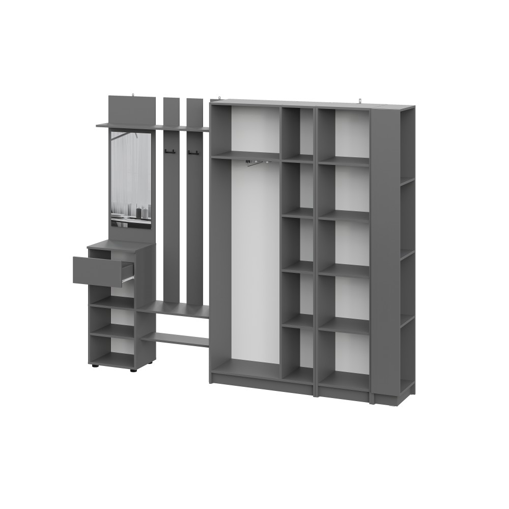 Просторная и светлая прихожая Бали создаст приятное первое впечатление при входе в квартиру. Здесь достаточно места для хранения верхней одежды, обуви и аксессуаров — предусмотрены шкафы и удобные полки. Прихожая в цвете "графит" подойдёт под любой стиль интерьера, а качественные материалы обеспечивают долговечность и лёгкость в уходе. Это пространство идеально подойдёт для тех, кто ценит чистоту, порядок и функциональность с первых шагов в доме.