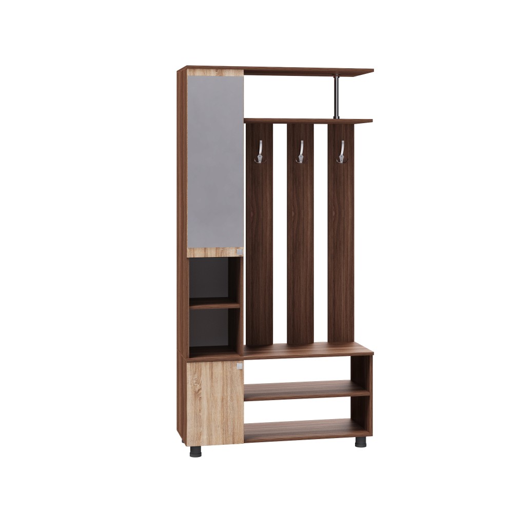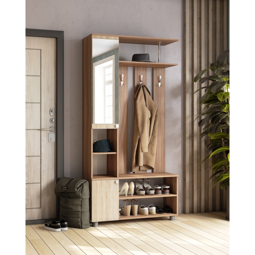 Первое впечатление о квартире формируется уже с порога, поэтому прихожая должна не только быть функциональной, но и радовать стильным оформлением, создавая атмосферу уюта для вас и ваших гостей. Отличным решением для небольших пространств станет мебельный комплекс «Эконом». В его конструкции предусмотрены крючки для верхней одежды, верхняя полка для головных уборов, закрытая секция со встроенным зеркалом, удобные полки для обуви и отделение с распашной дверцей.