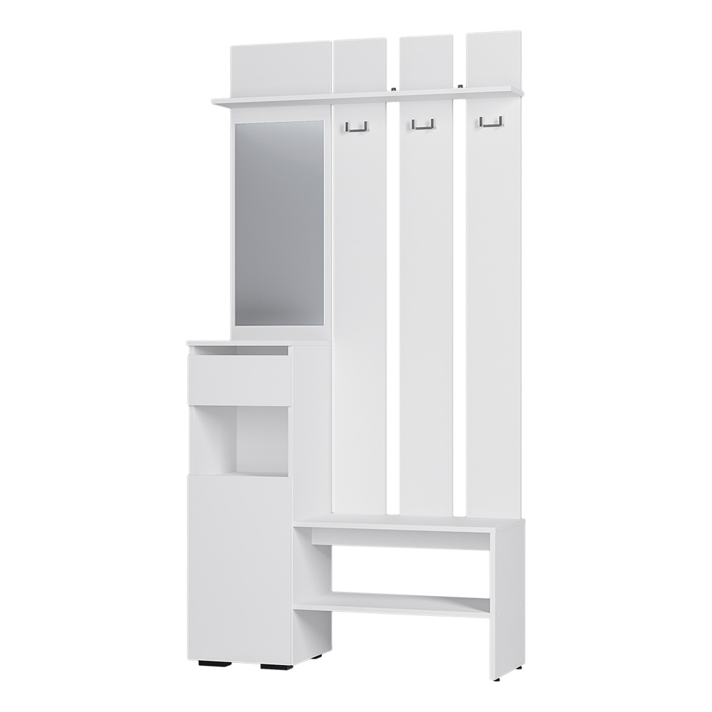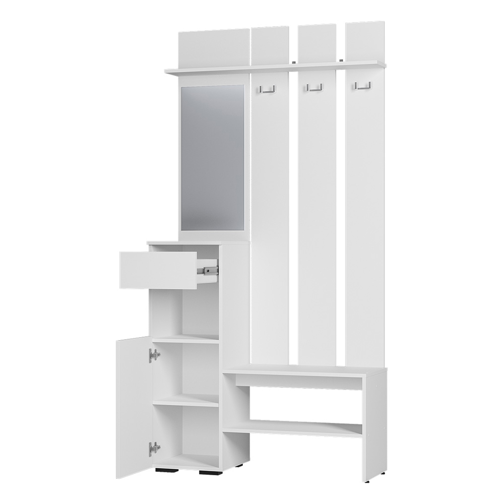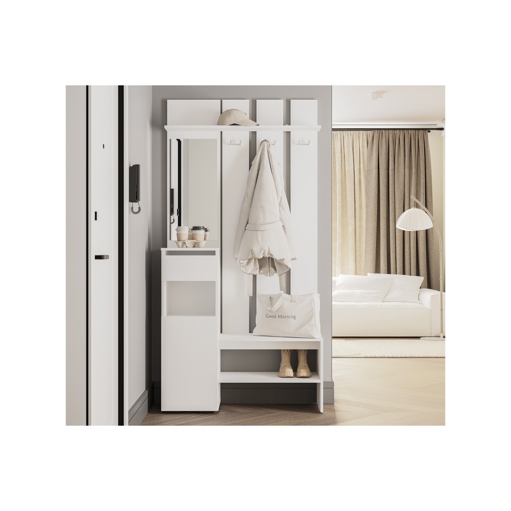 Прихожая «Мия» представлена в двух трендовых оттенках, которые дополнят прихожую в нейтральных тонах или подчеркнут пространство с яркими акцентами в интерьере. Простая геометрическая конструкция без лицевой фурнитуры создаст атмосферу лёгкости и визуально расширит прихожую. Для комфортной подготовки к выходу из дома модель дополнена вертикальным зеркалом.