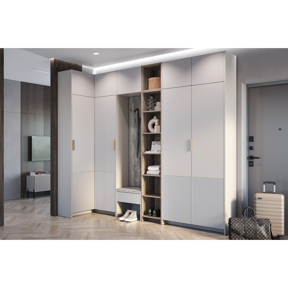 Прихожая Пандора — это универсальное решение для прихожей. Продуманное разноплановое наполнение позволит Вам разместить верхнюю одежду на плечиках на евроштанге, вещи в сложенном виде и аксессуары на полках.