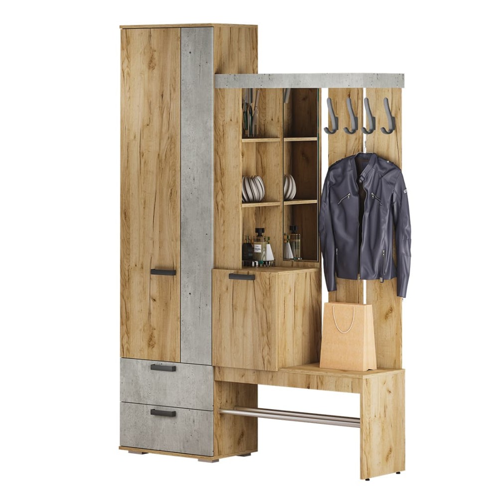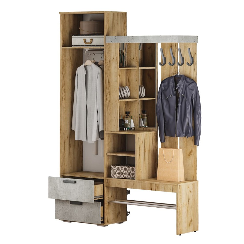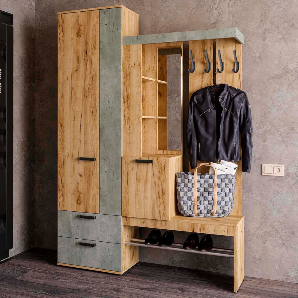 Прихожая Трамп в цвете «крафт/бетон» — идеальный выбор для современного интерьера, особенно в стиле лофт. Изготовлена из ЛДСП двух цветов: «крафт» и «бетон».