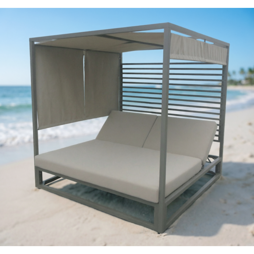 Современный и стильный шатер с лежаками Twin Sun добавит элегантность и стиль любому открытому пространству, где он используется. Идеально подходит для отдыха у бассейна, в саду, на террасе или во внутреннем дворике. Шатер имеет каркас из окрашенного алюминия, что обеспечивает крепкость и долговечность модели. А мягкие комфортные подушки лежаков дополняют изделие и гарантируют полное расслабление. Особенности: Каркас выполнен из окрашенного алюминия. Подушки толщиной 150 мм выполнены из водонепроницаемой ткани - полистера. Навес выполнен из водонепроницаемой ткани - полистера. Требуется сборка. Открыть инструкцию по уходу. Обратите внимание! Фабрика Tagliamento оставляет за собой право вносить изменения в собственные изделия в любой момент, которые сочтет необходимыми в целях улучшения своих изделий на основании нововведений и требований рынка.
