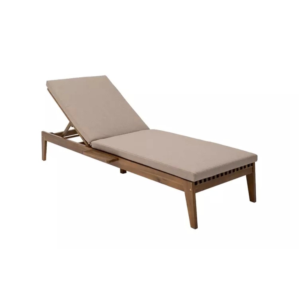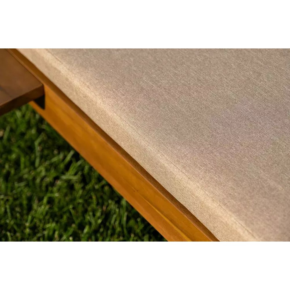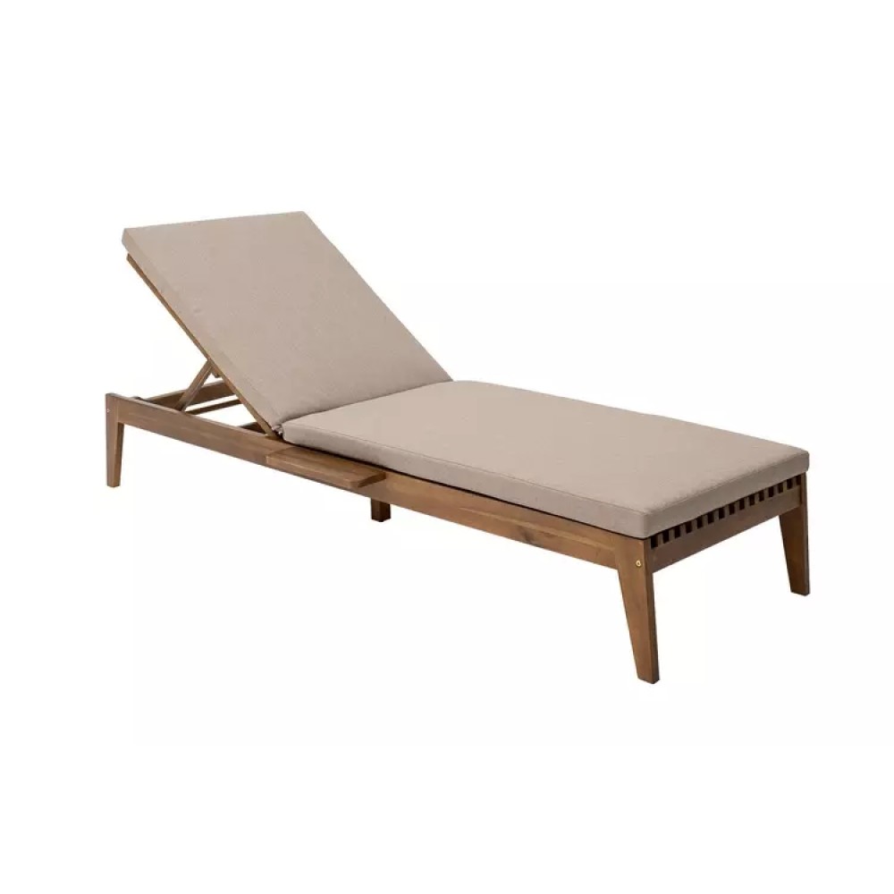 MONA – современная коллекция садовой мебели из акации в скандинавском стиле в комбинации массива акации и бежевых подушек.