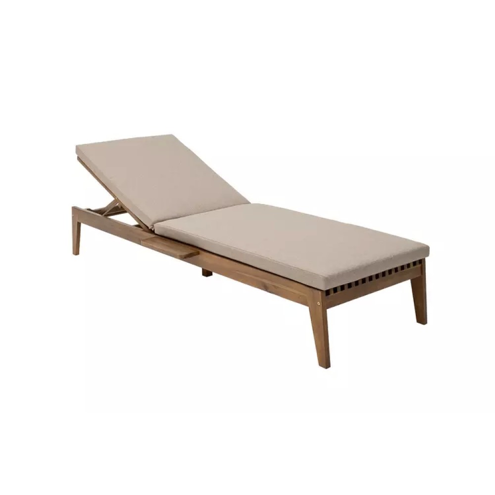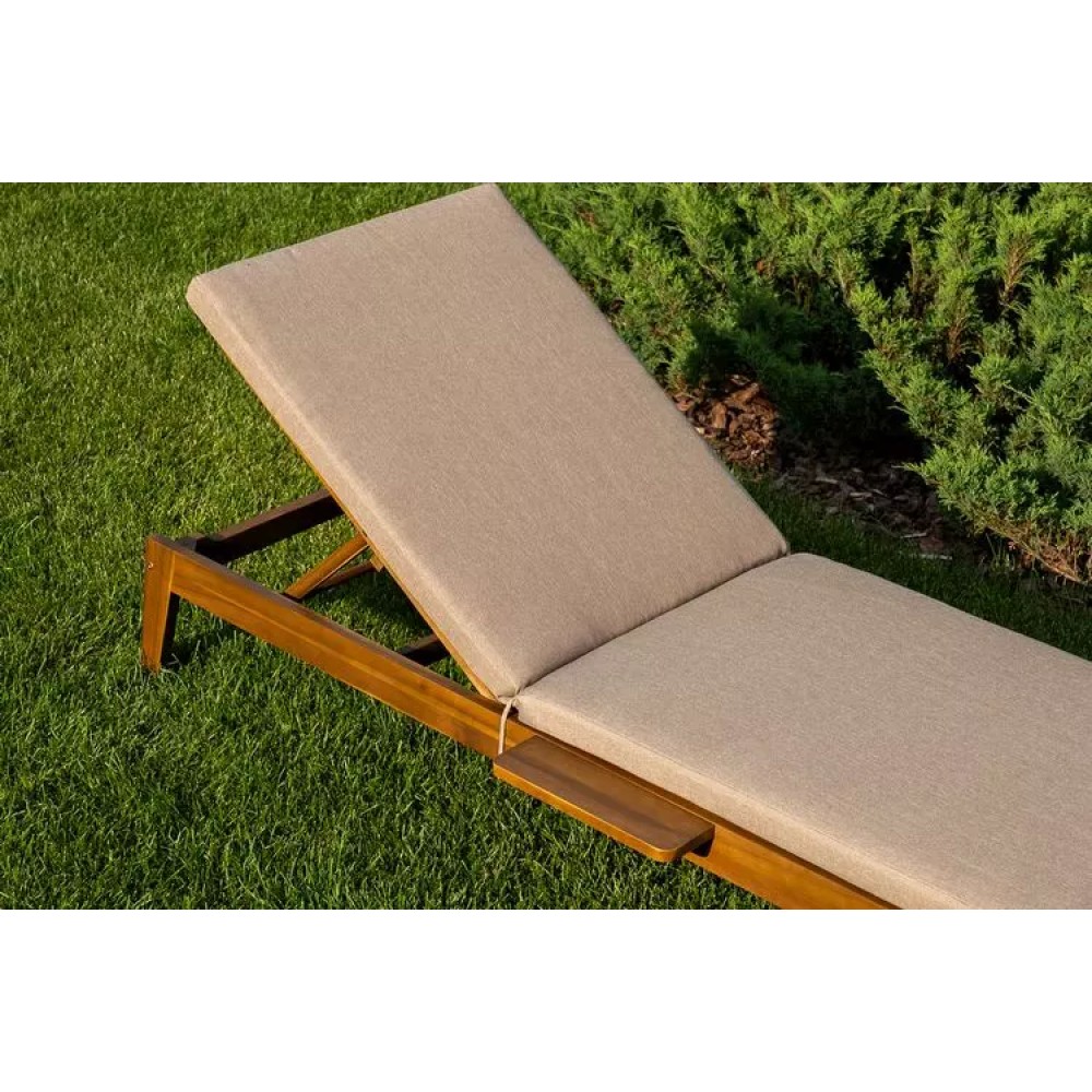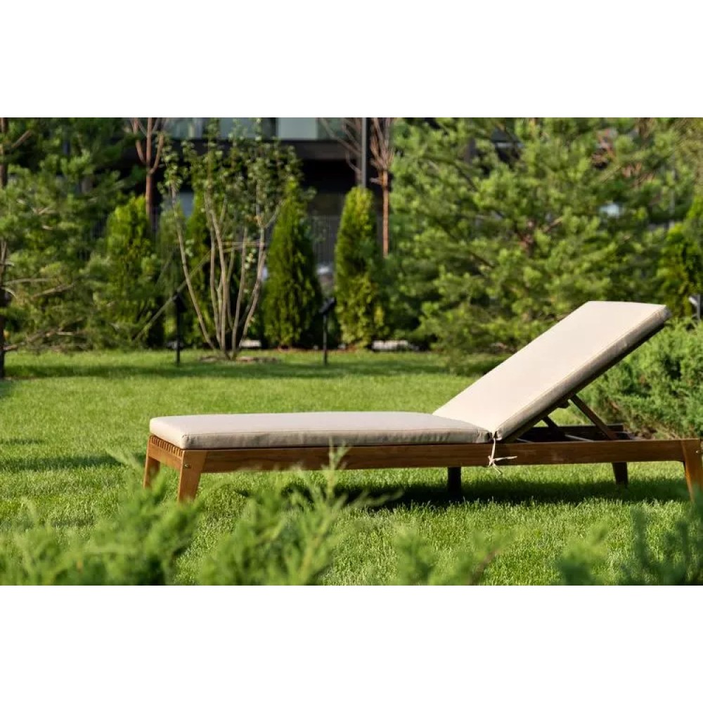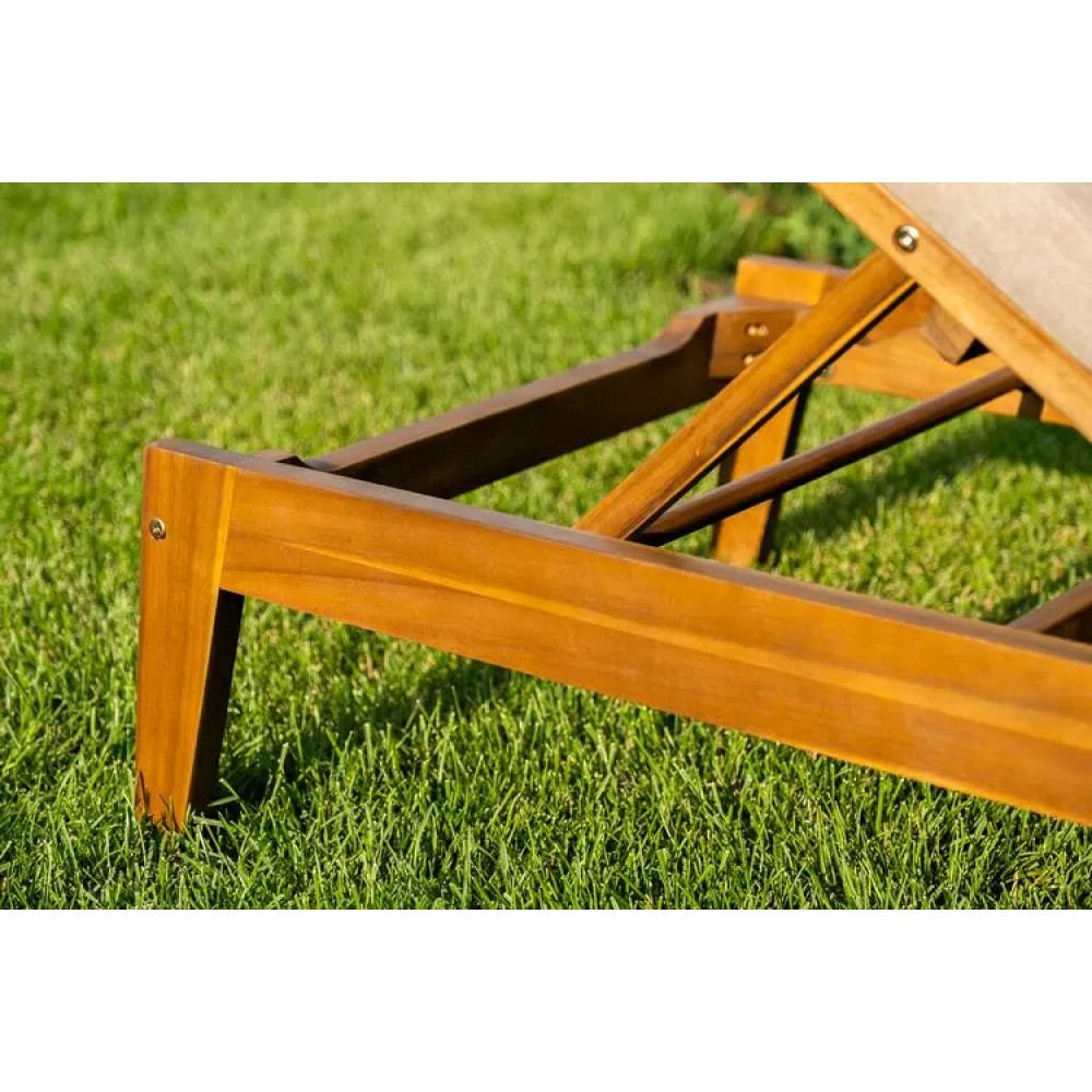 MONA – современная коллекция садовой мебели из акации в скандинавском стиле в комбинации массива акации и бежевых подушек.