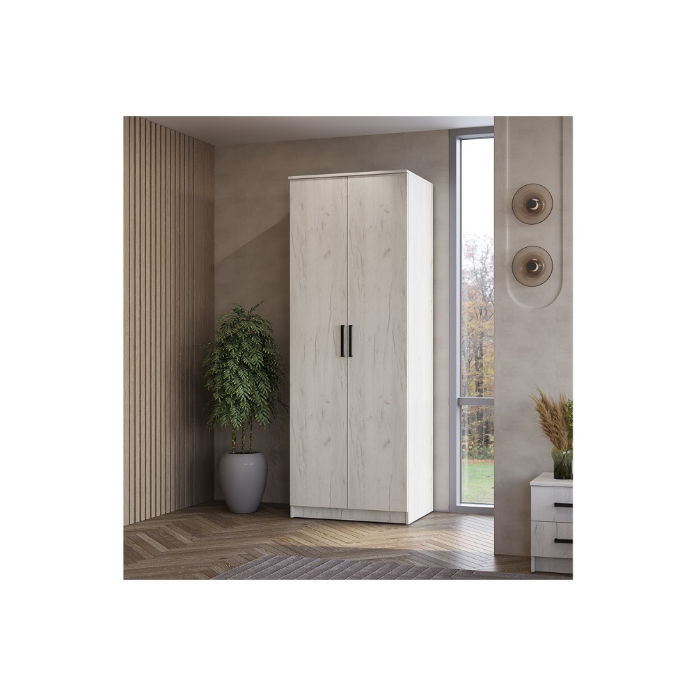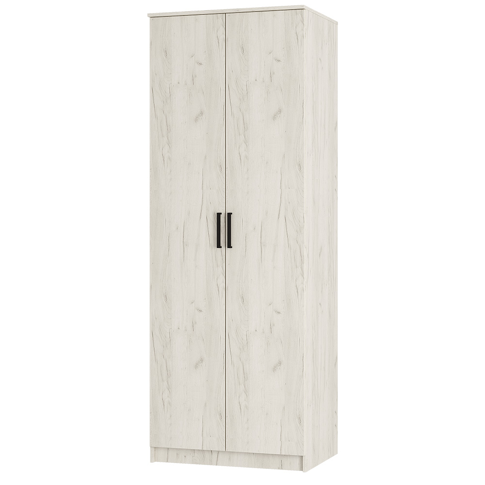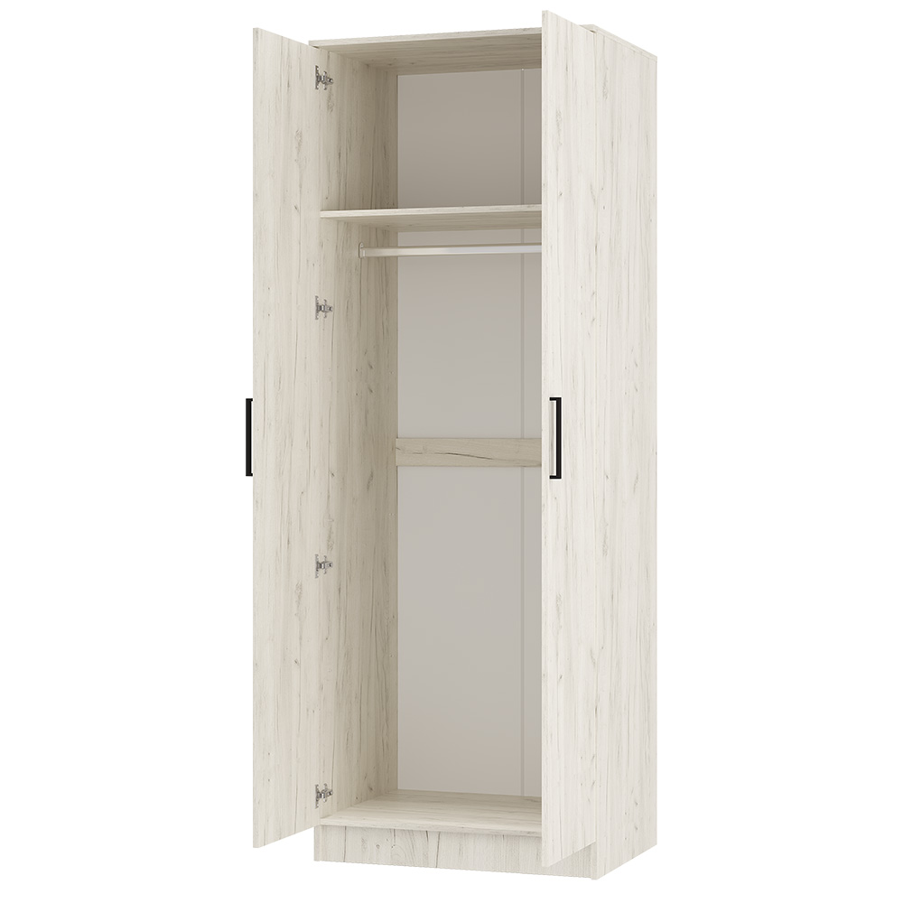 Лаконичная модель двухстворчатого шкафа Фиеста справится с размещением небольшого гардероба. При этом модель содержит достаточно вместительную зону с хромированной штангой для верхней одежды или одежды на вешалках, а также верхнее и нижнее отделение для хранения вещей.