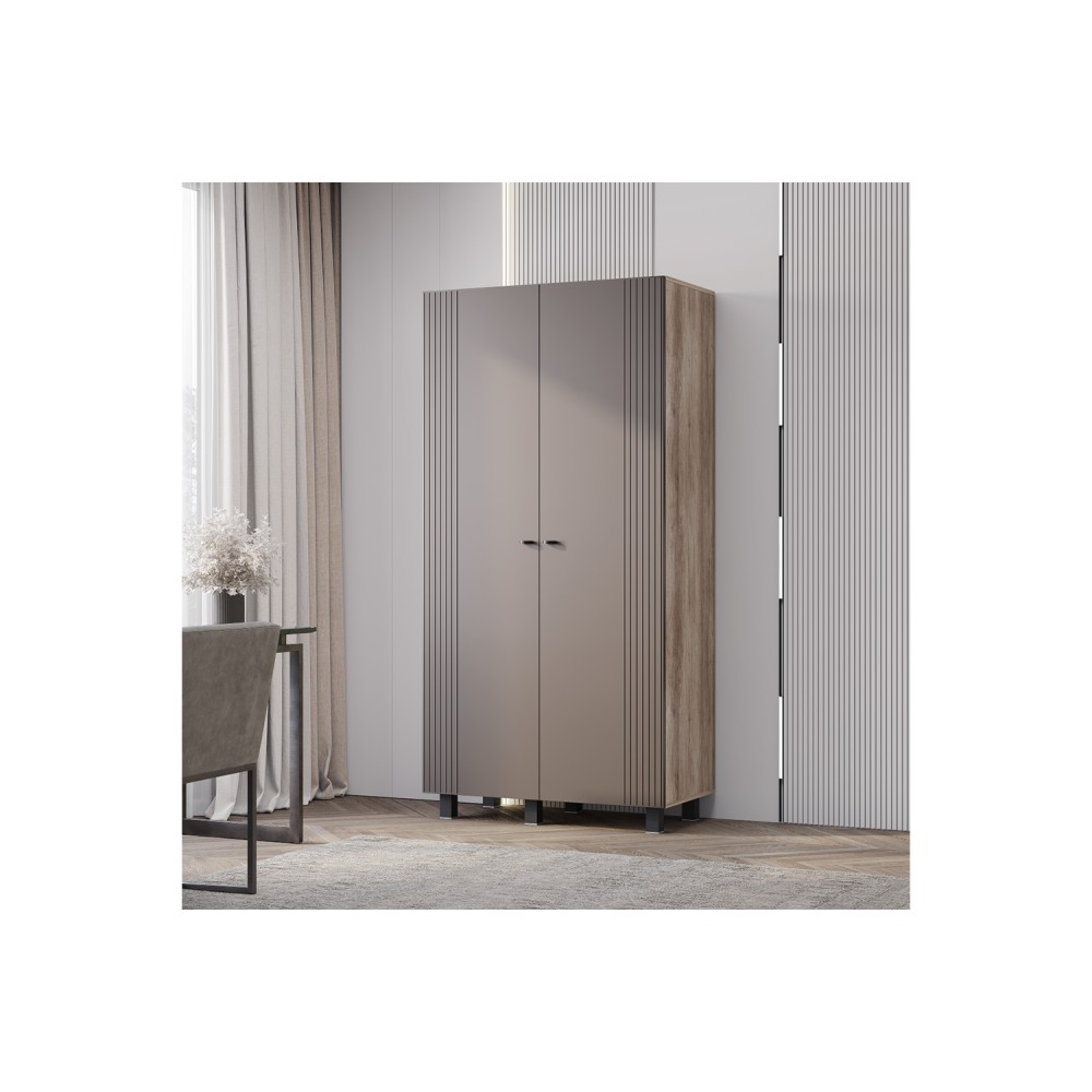 Шкаф 2-х створчатый Олива ШК-03 — это элегантное и функциональное решение для любого интерьера. Коллекция представлена в тренировках пудровых оттенках. Фрезеровка на фасадах создает интересные текстурные контрасты и визуальные акценты. Кроме того, этот элемент декора также помогает скрыть мелкие загрязнения, что упрощает уход за мебелью. Черные металлические накладные ручки и петли с доводчиками обеспечивают удобство в использовании.