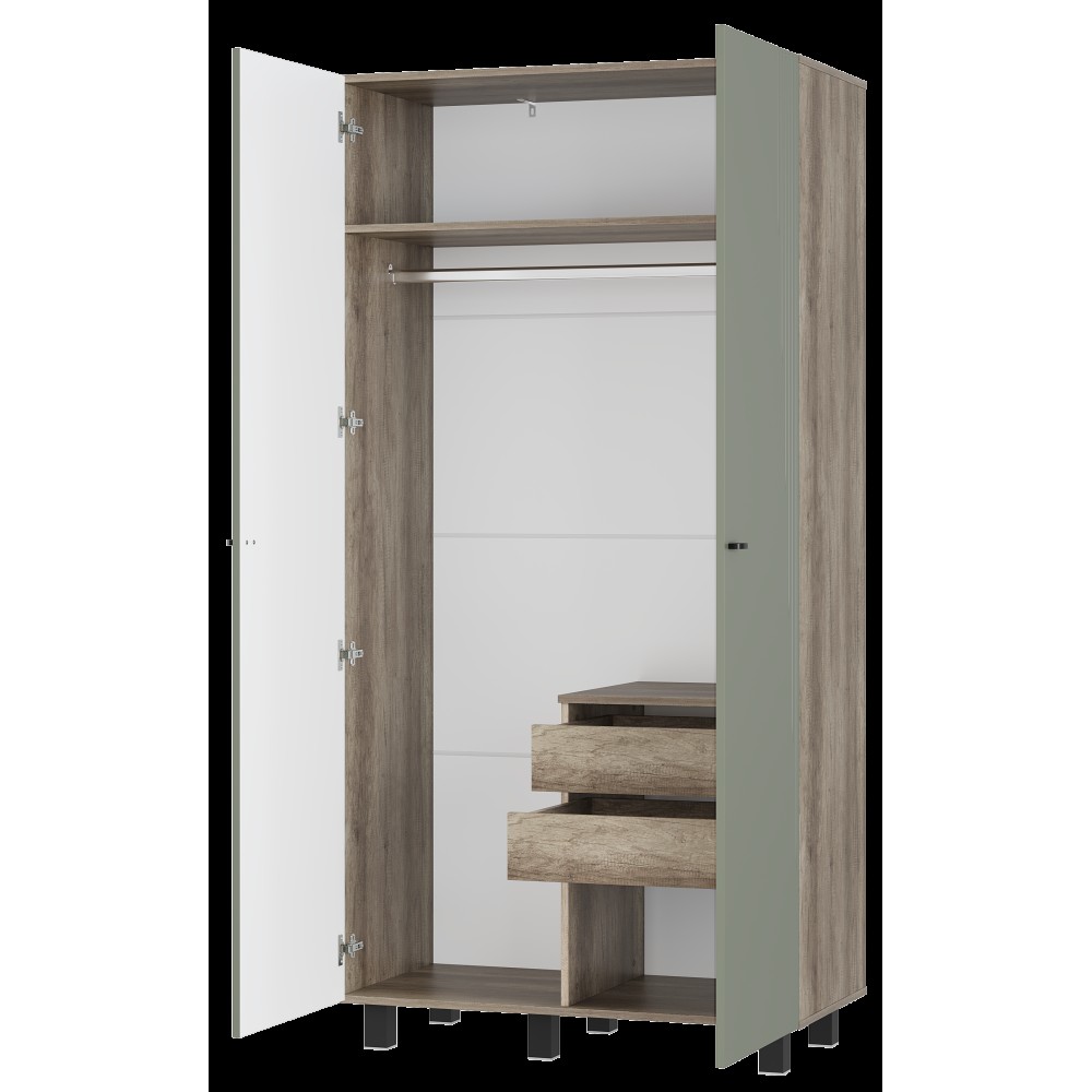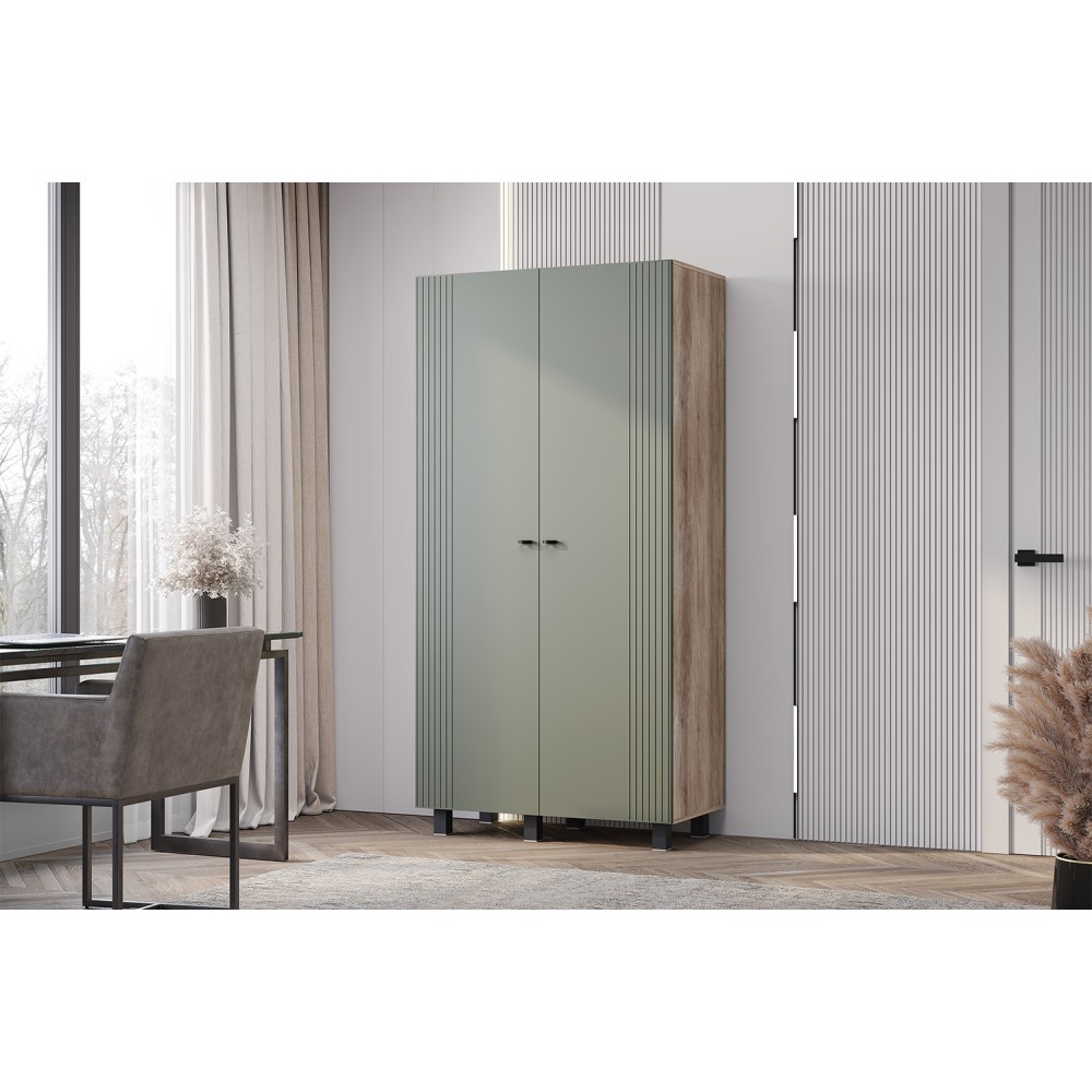 Шкаф 2-х створчатый "Олива" ШК-03 — это компактная, но вместительная модель, которая станет идеальным решением для тех, кто ценит минимализм в дизайне. Его строгие простые линии и геометрическая фрезеровка на дверцах придают шкафу современный и стильный вид, который легко впишется в любой интерьер.