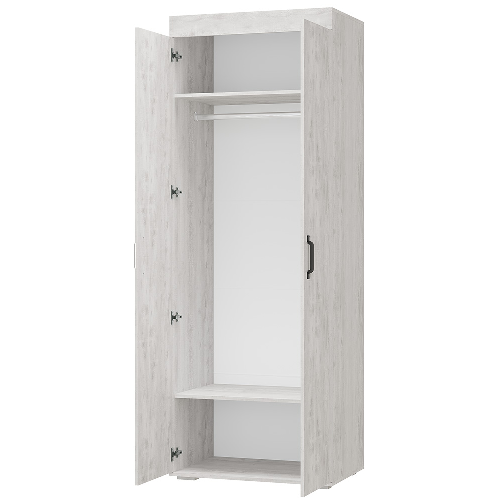 Двухстворчатый шкаф Прима - компактная и яркая модель для современного интерьера. Для тех, кто хочет сэкономить пространство, но при этом уместить все самые нужные вещи в одном месте. Данная модель шкафа идет в комплекте со штангой. По желанию её можно заменить полками ПЛ-06, которые приобретаются отдельно.
