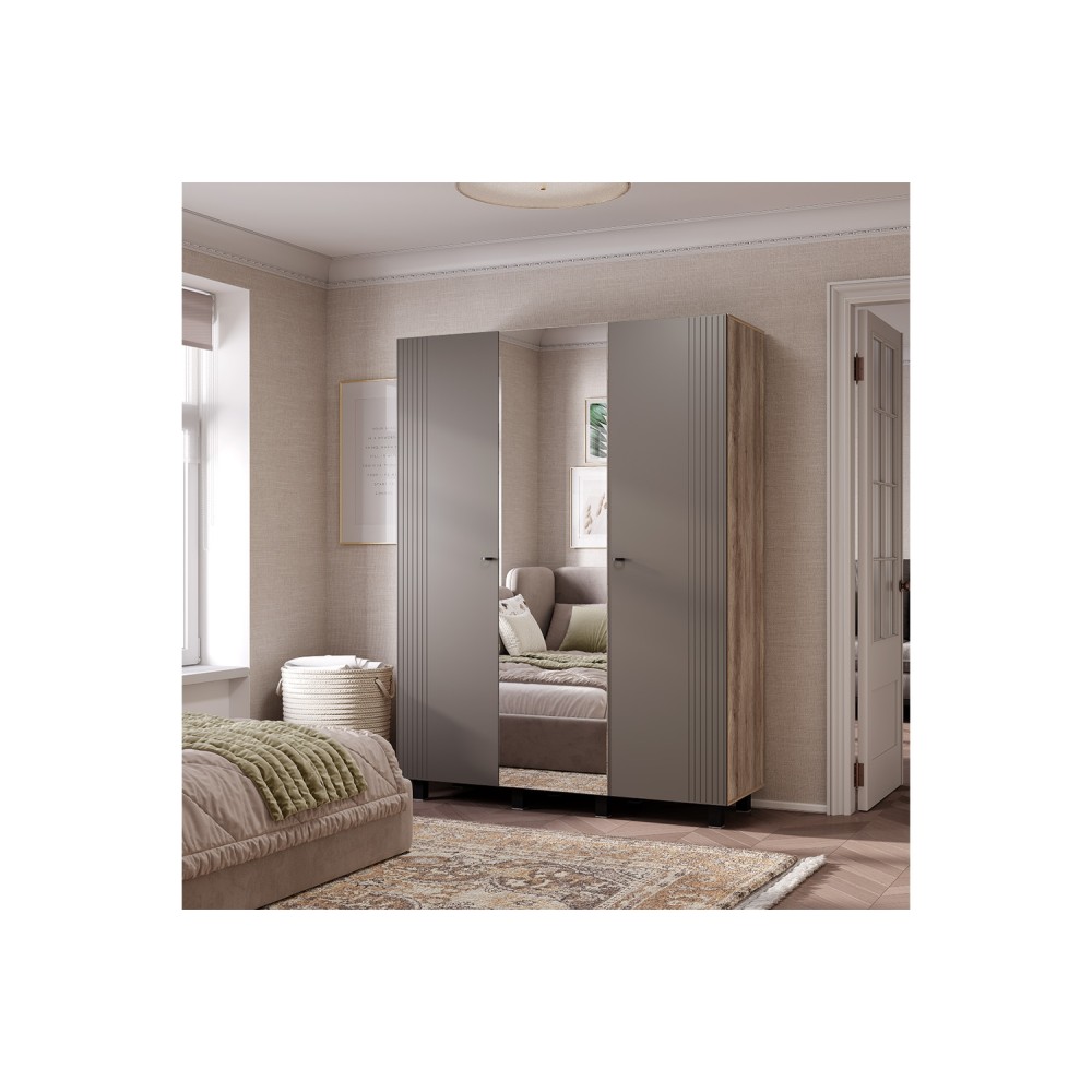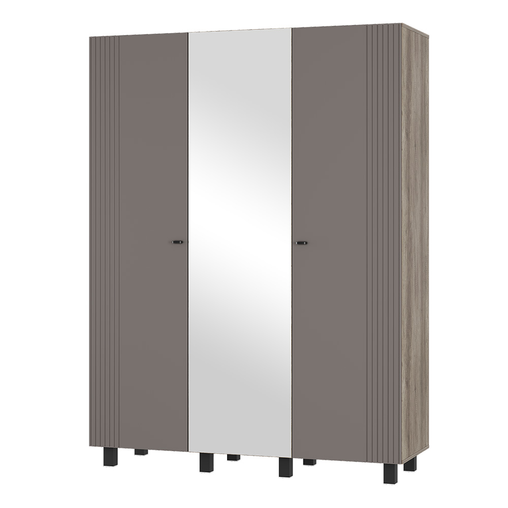 Шкаф 3-х створчатый Олива ШК-03 — это элегантное и функциональное решение для любого интерьера. Коллекция представлена в тренировках пудровых оттенках. Фрезеровка на фасадах создает интересные текстурные контрасты и визуальные акценты. Кроме того, этот элемент декора также помогает скрыть мелкие загрязнения, что упрощает уход за мебелью. Черные металлические накладные ручки и петли с доводчиками обеспечивают удобство в использовании.