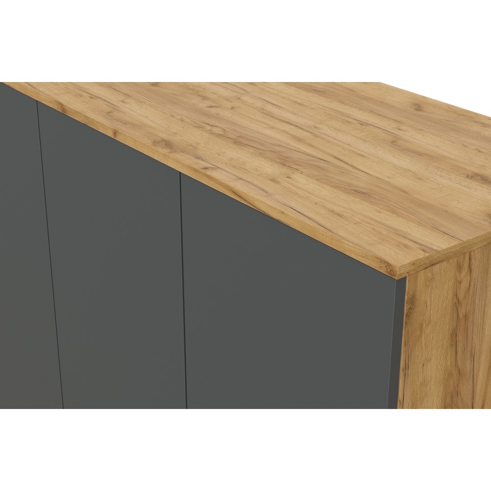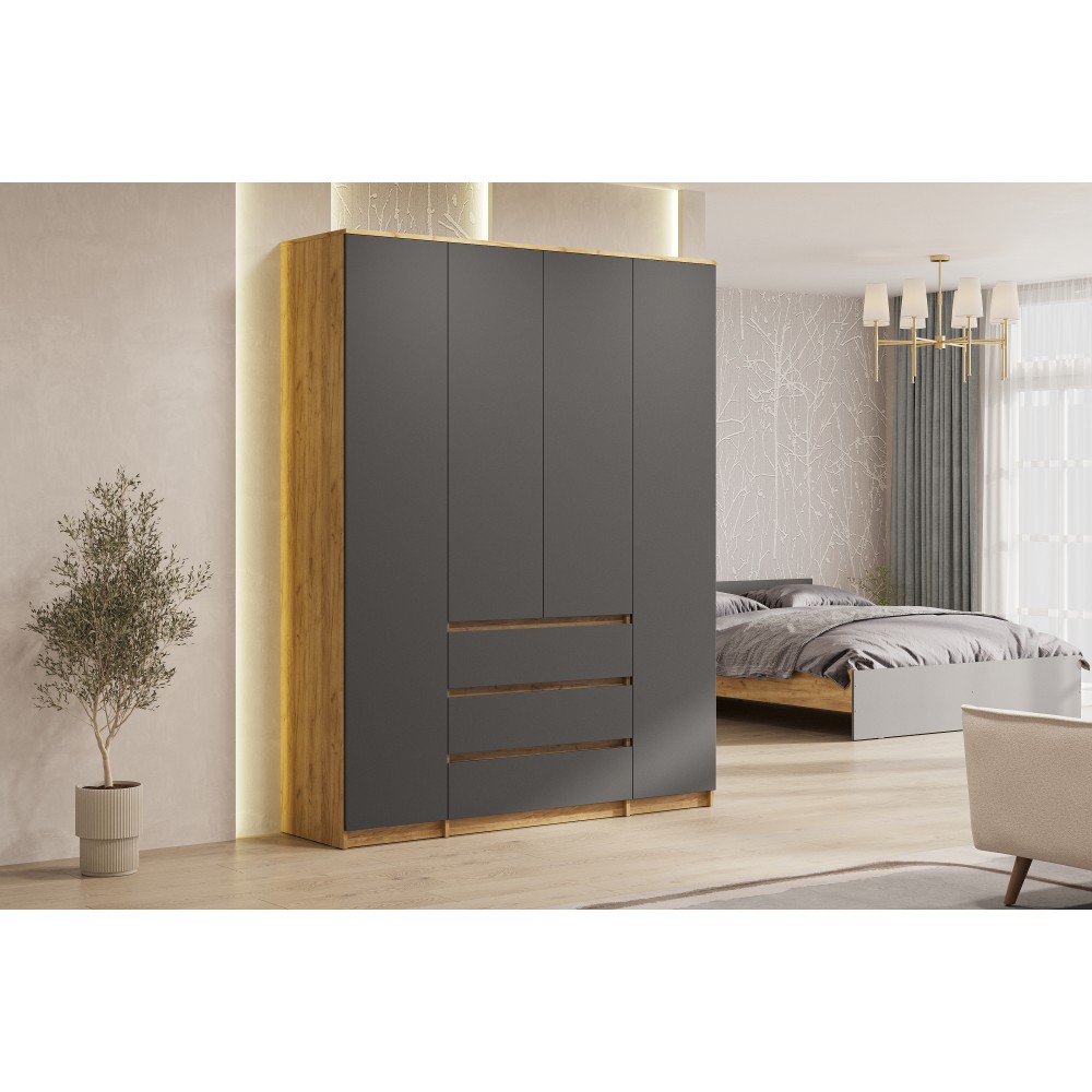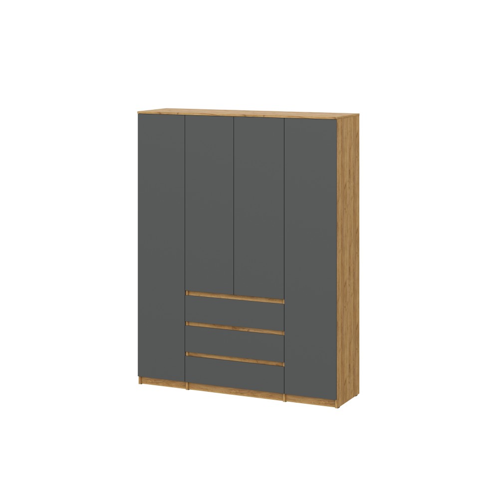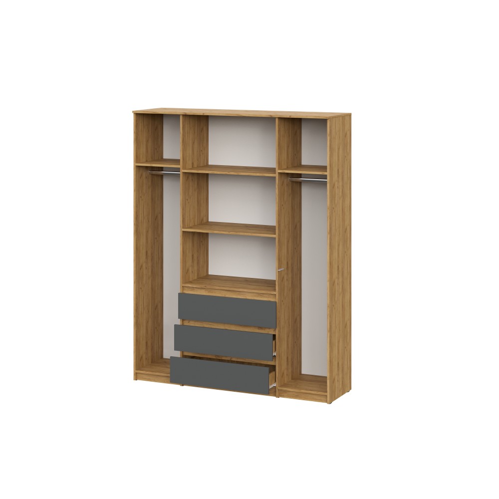 Вместительный распашной шкаф Денвер – это идеальное место хранения. Главное преимущество этого шкафа для одежды - его размер и наличие трех выдвижных ящиков. В нем вы сможете найти место для каждой вещи - от платьев до курток, от белья до обуви. Благодаря широким отделениям, вы сможете легко разделить вашу одежду по категориям и поддерживать порядок внутри. Распашные двери обеспечивают удобный доступ к вашей одежде. Три выдвижных ящика помогут легко и быстро найти нужное. Шкаф Денвер оснащен пятью вместительными полками и двумя штангами для одежды, обеспечивая сохранность и презентабельность Ваших вещей. Двери открываются с помощью нажатия.