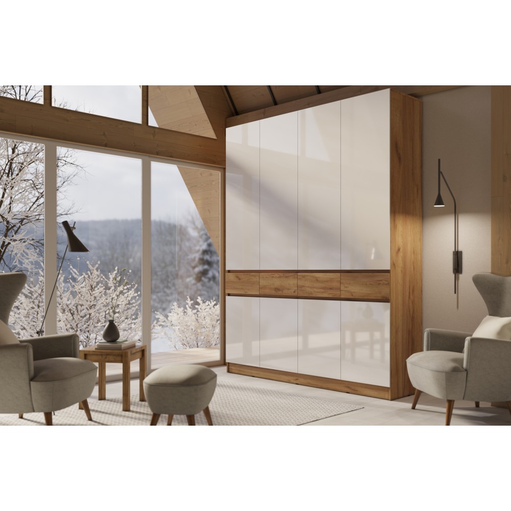 Шкаф Роджина - это стильное и функциональное решение для вашего интерьера. Его элегантный дизайн и современная отделка создают атмосферу свежести и простора. Открывание дверей шкафа производится за дверцы фасада