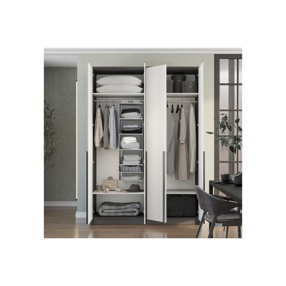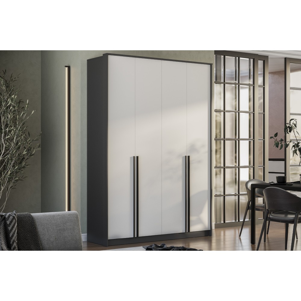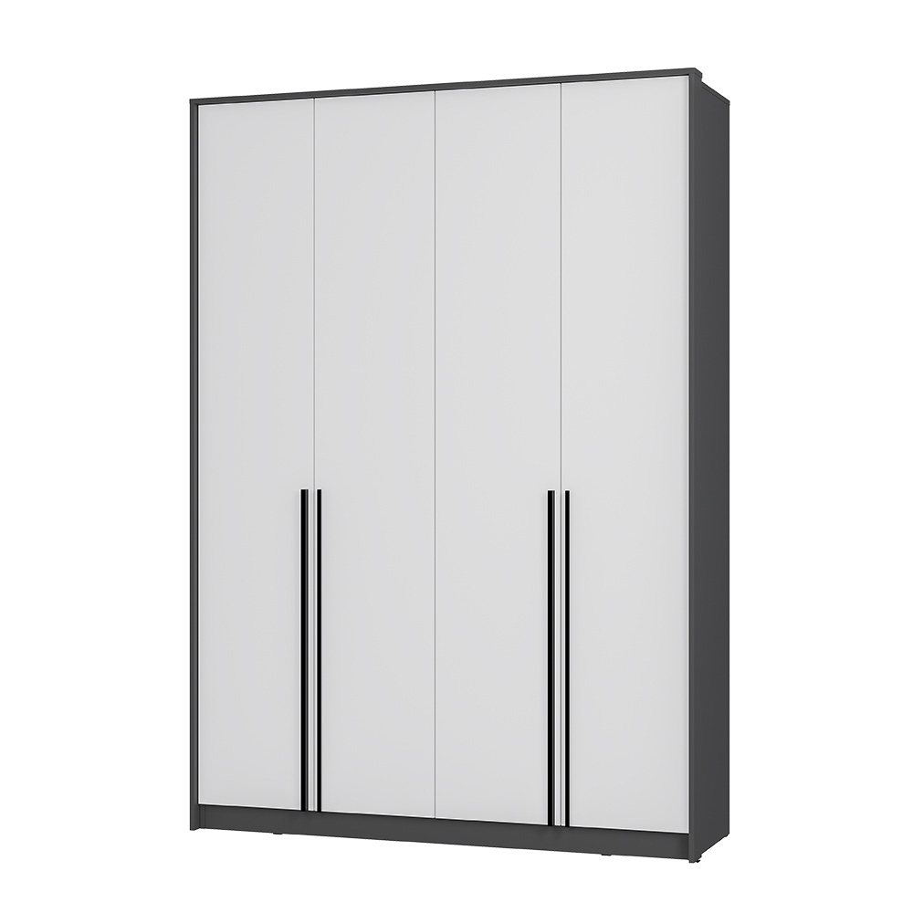 Коллекция "Шарм" - современная классика в контрастном исполнении "белый/графит". Шкаф обретает массивность благодаря монолитному ЛДСП - порталу, дополнен вертикальными черными ручками и надежными петлями с доводчиками.