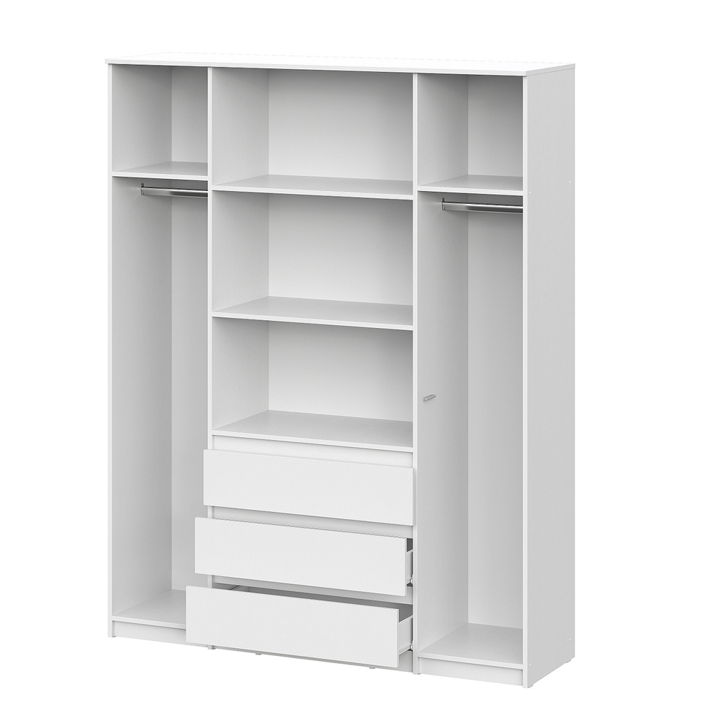 Вместительный распашной шкаф Денвер – это идеальное место хранения. Главное преимущество этого шкафа для одежды - его размер и наличие трех выдвижных ящиков. В нем вы сможете найти место для каждой вещи - от платьев до курток, от белья до обуви. Благодаря широким отделениям, вы сможете легко разделить вашу одежду по категориям и поддерживать порядок внутри. Распашные двери обеспечивают удобный доступ к вашей одежде. Три выдвижных ящика помогут легко и быстро найти нужное. Шкаф Денвер оснащен пятью вместительными полками и двумя штангами для одежды, обеспечивая сохранность и презентабельность Ваших вещей. Двери открываются с помощью нажатия.