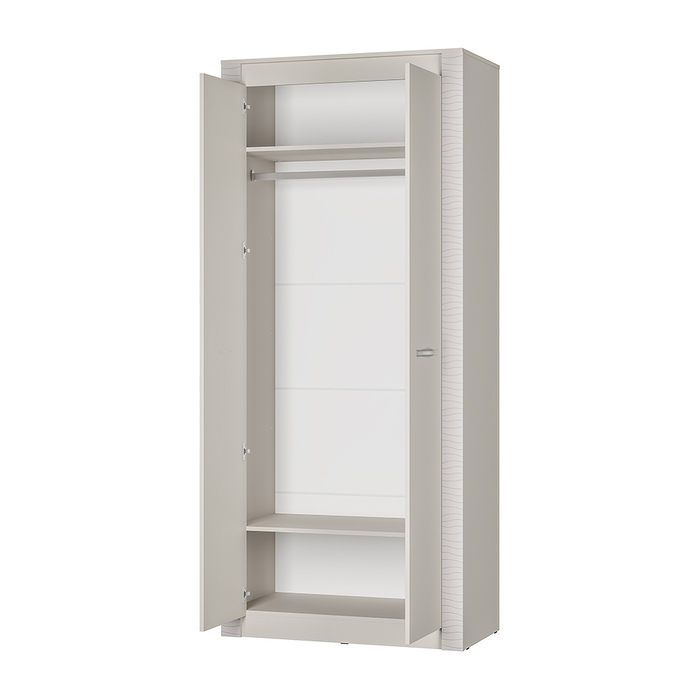 Двухстворчатый шкаф "Монако" относится к одноименной модульной серии. Модель не имеет вычурного декора и лишних деталей, выполнена в сдержанном и лаконичном стиле. Комплектация шкафа представляет собой ниши для хранения вещей в сложенном виде, а также отделение с хромированной штангой для одежды на вешалках. Для создания модели используется качественная ЛДСП цвета "кашемир". Створки дополнены изящными ручками. Дополнительно можно приобрести полки ПЛ-10.