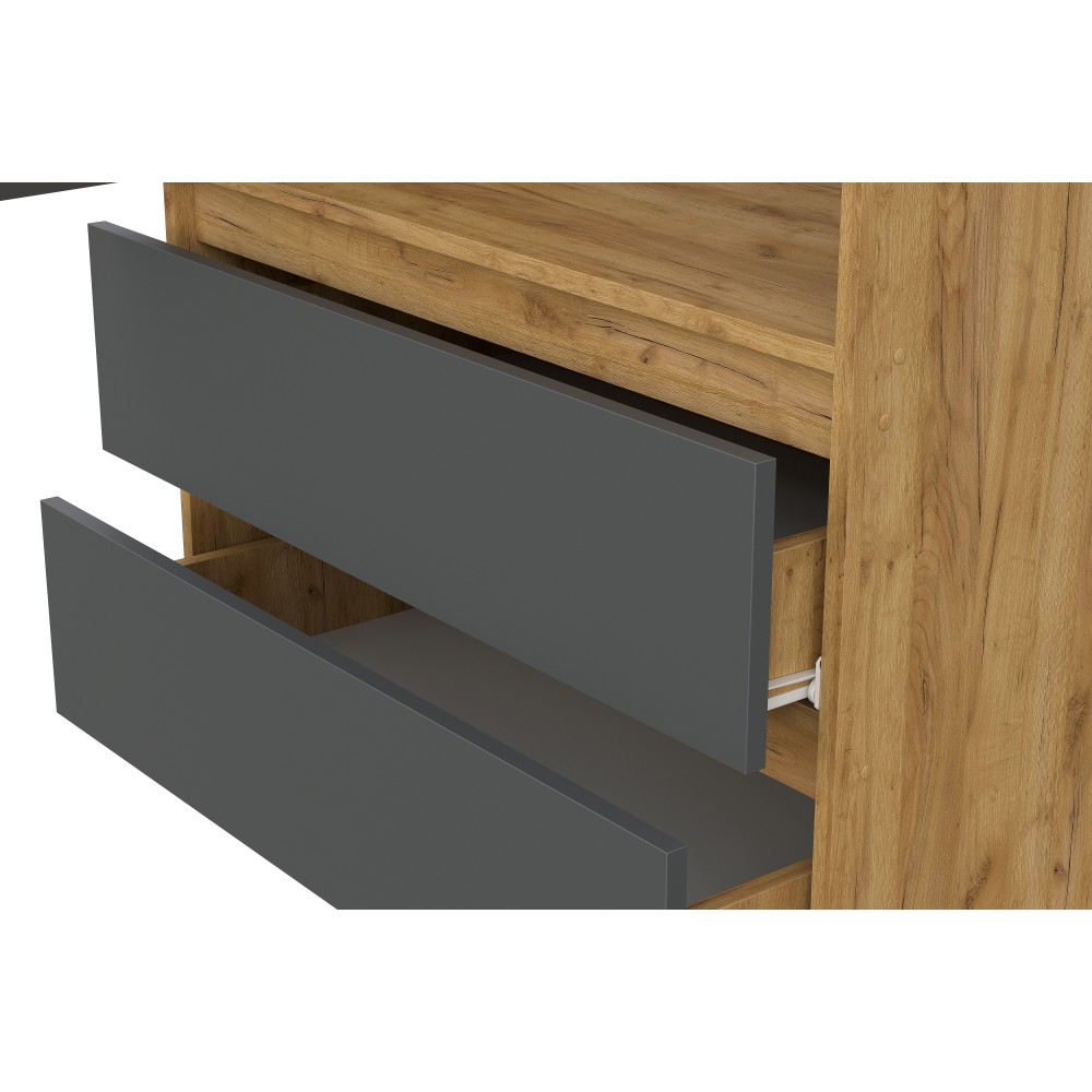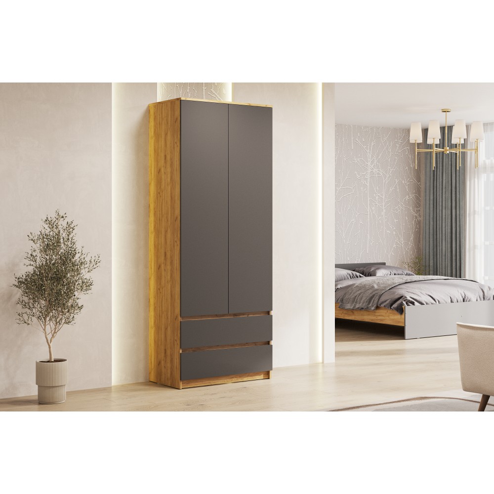 Шкаф Денвер с распашными дверьми и двумя ящиками - это идеальный выбор для тех, кто ищет стильную и функциональную мебель для своего дома. За распашными дверцами скрыты полки и штанга для одежды. Шкаф имеет два выдвижных вместительных ящика для хранения необходимых вещей. Цвет дуб золотой/белый выглядит стильно и практично, а благодаря своей универсальности, он подойдет для любого современного интерьера.