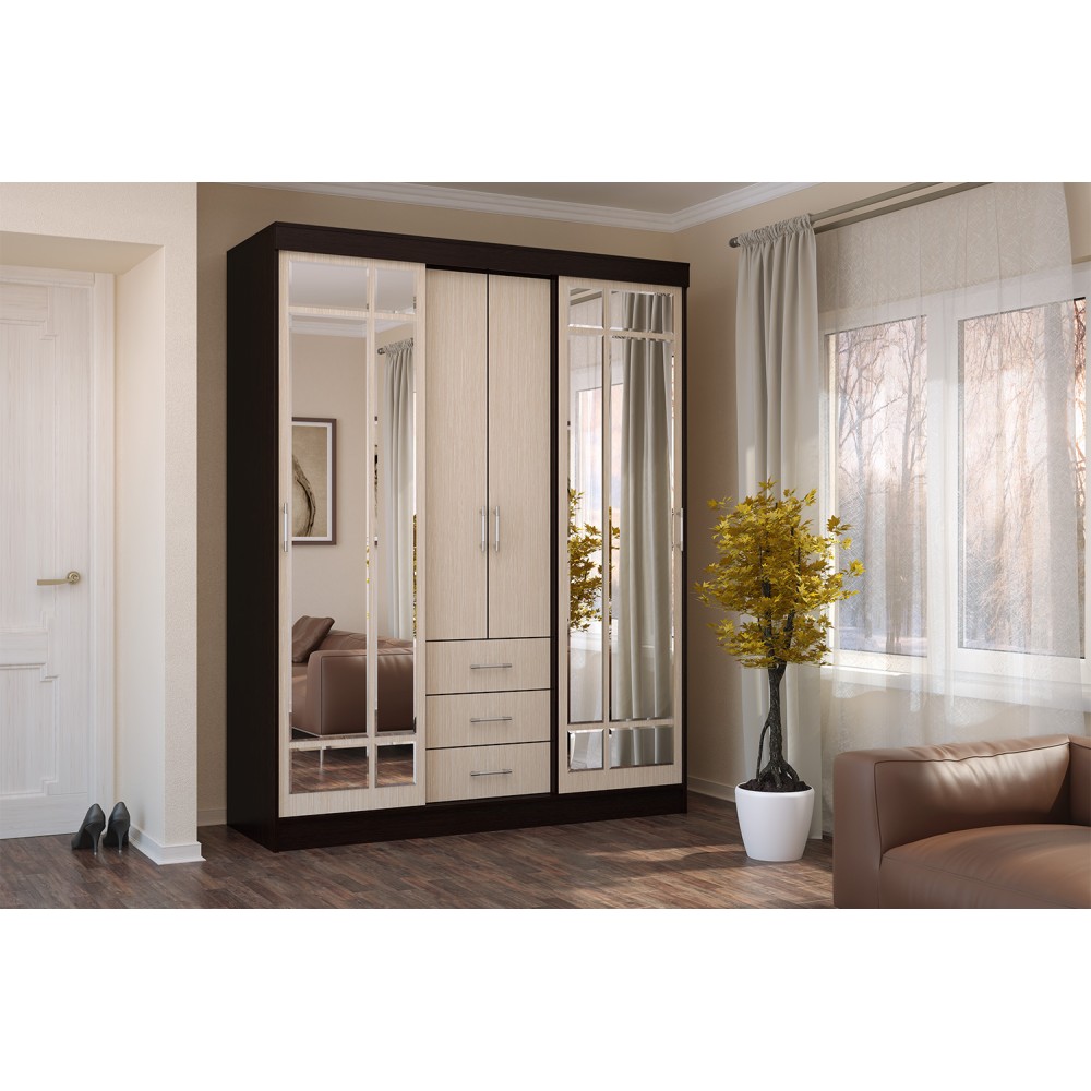 Шкаф-купе Маэстро — это стильное и функциональное решение для вашего интерьера. Его элегантный дизайн и современная отделка создают атмосферу свежести и простора. Этот шкаф оборудован удобными дверцами, зеркалами и выдвижными ящиками.