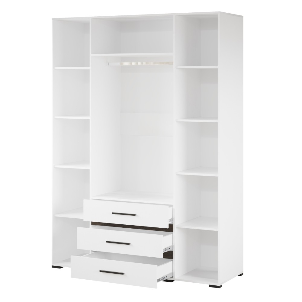 Организоваться комфортное хранение одежды и белья в спальне возможно, приобретя всего один шкаф Модена. Четырехдверный шкаф имеет две секции с полками для вещей в сложенном виде, секцию с продольной штангой для одежды на плечиках и три вместительных ящика для белья и аксессуаров. Украшают модуль зеркальные фасады, которые облегчают конструкцию шкафа и добавляют пространству легкости и "воздуха".