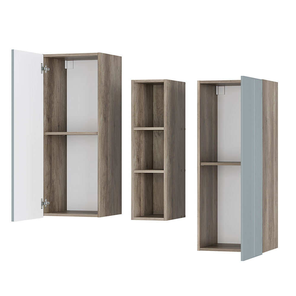 Шкаф навесной Олива ШКН-01 — это элегантное и функциональное решение для любого интерьера. Коллекция представлена в тренировках пудровых оттенках. Фрезеровка на фасадах создает интересные текстурные контрасты и визуальные акценты. Кроме того, этот элемент декора также помогает скрыть мелкие загрязнения, что упрощает уход за мебелью. Черные металлические накладные ручки и петли с доводчиками обеспечивают удобство в использовании.