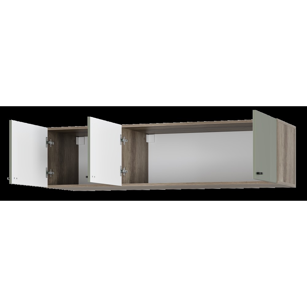 Шкаф навесной Олива можно использовать как антресоль к шкафам Олива, как подвесную полку или как напольную тумбу. Элегантная фрезеровка – продолжение индивидуальности коллекции. Простая и функциональная конструкция.