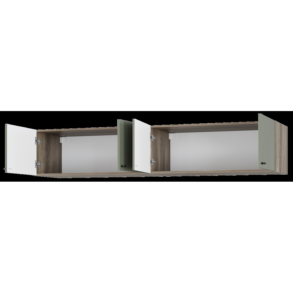 Шкаф навесной Олива можно использовать как антресоль к шкафам Олива, как подвесную полку или как напольную тумбу. Элегантная фрезеровка – продолжение индивидуальности коллекции. Простая и функциональная конструкция.