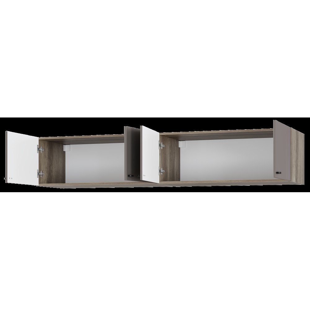 Шкаф навесной Олива можно использовать как антресоль к шкафам Олива, как подвесную полку или как напольную тумбу. Элегантная фрезеровка – продолжение индивидуальности коллекции. Простая и функциональная конструкция.