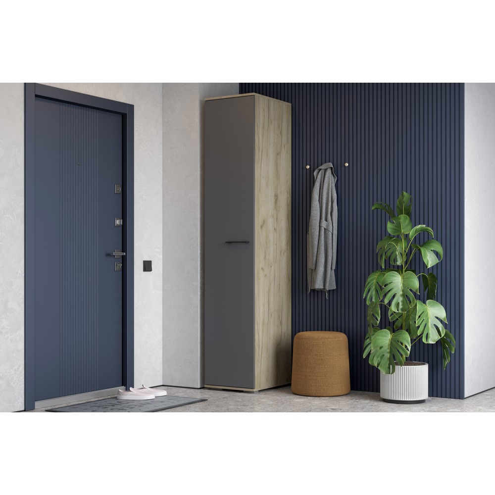 Компактный шкаф шириной 40 см с полками. Модуль выполнен в стиле лофт и может быть установлен, как самостоятельный предмет мебели или в качестве элемента шкафной группы.