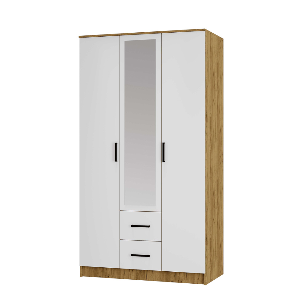 Шкаф трехстворчатый «Евро» ШК-06 - ваш стильный и удобный спутник в организации пространства. Он состоит из двух отделений со штангой, отделения с полками и двух выдвижных ящиков на роликовых направляющих.