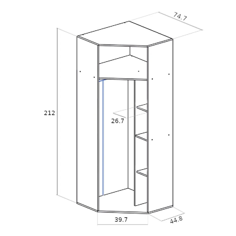 Рационально использовать пространство в комнате, при этом организовать хранение гардероба поможет угловой шкаф Белла. Внутренне наполнение со штангой и многочисленными полками позволит разместить, одежду и обувь.