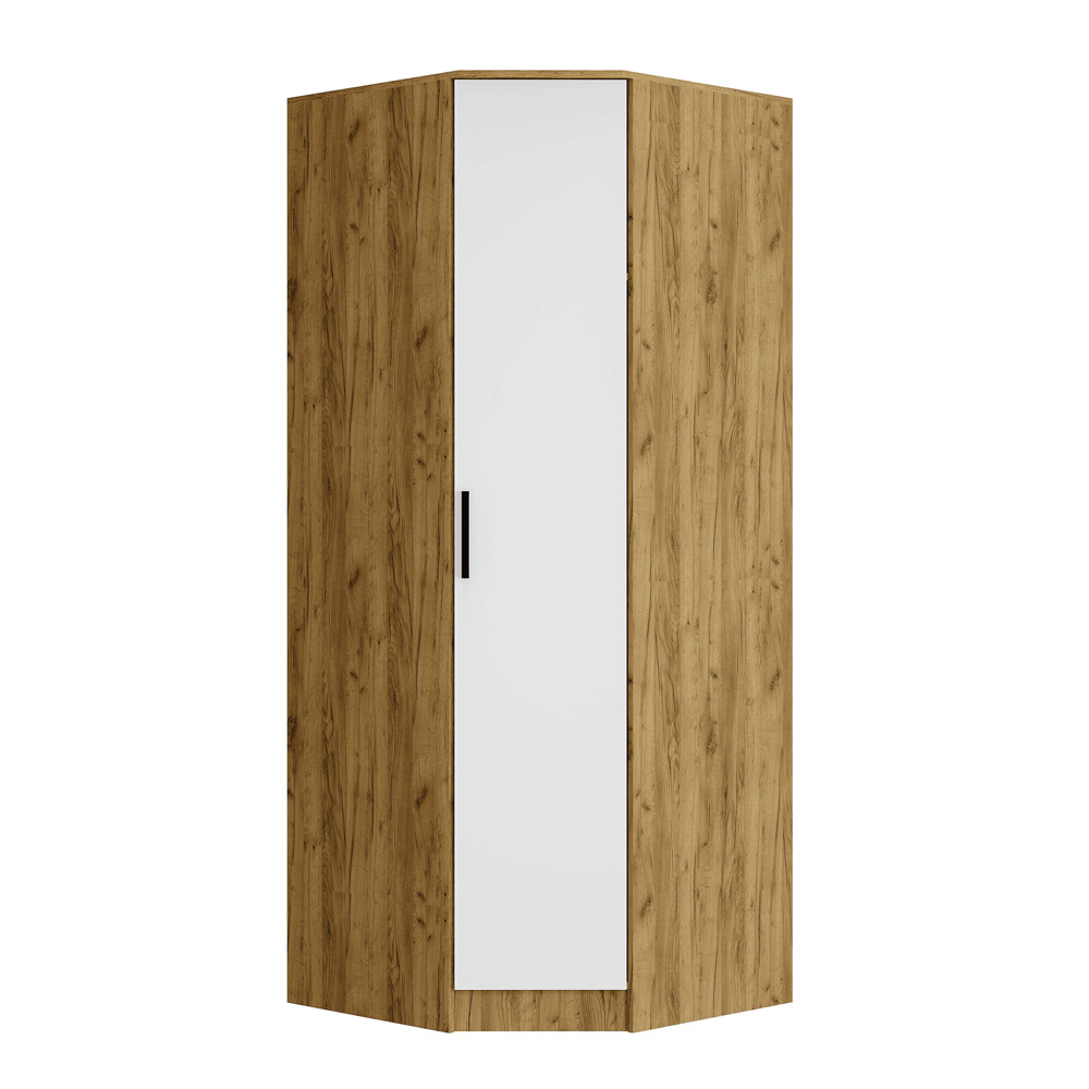 Угловой шкаф «Евро» - лучший выбор для тех, кто хочет сохранить максимум свободного пространства в комнате. Компактный, но вместительный шкаф позволит хранить большой гардероб. Модель оснащена секцией с крепкой штангой, полками и просторной полкой.