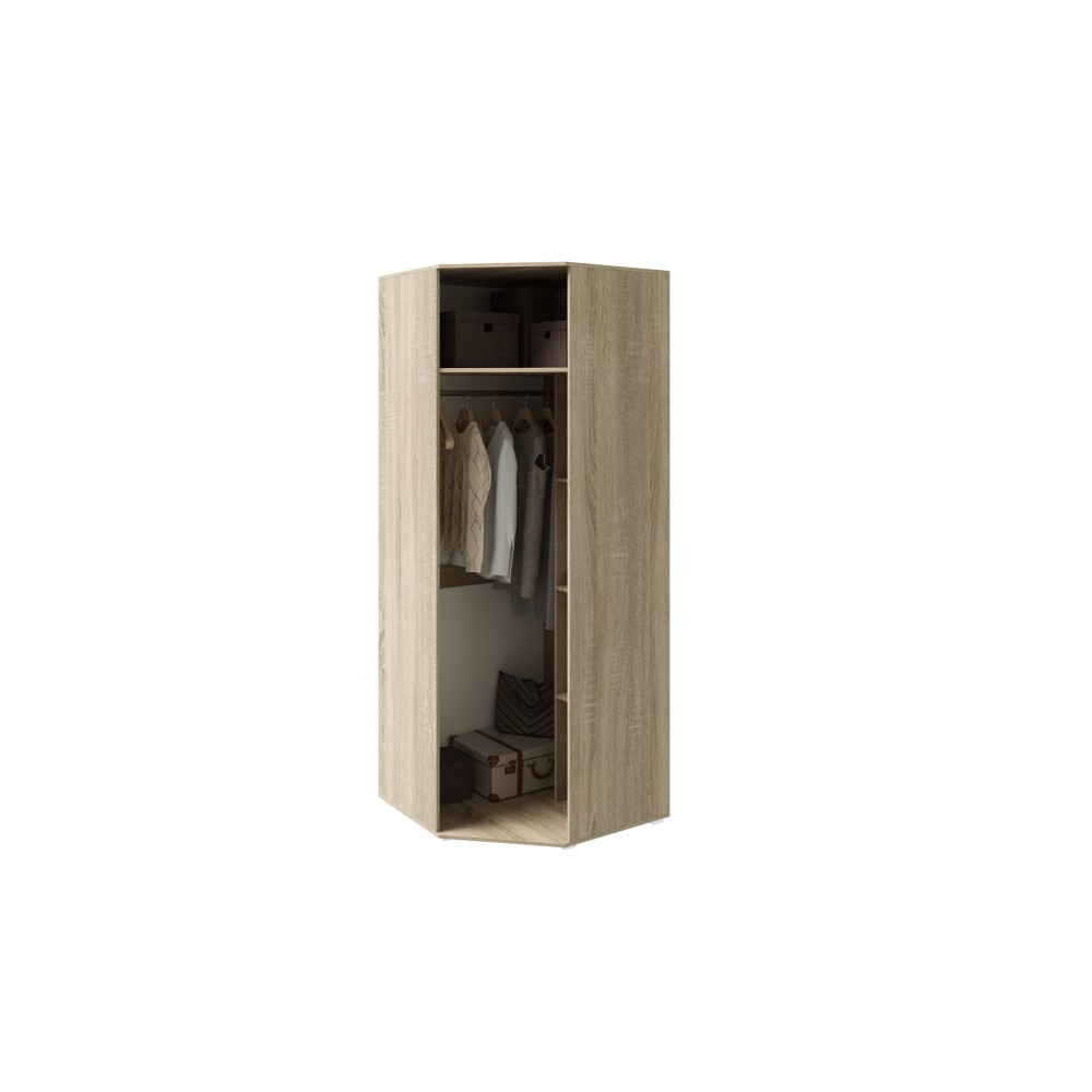 Рационально использовать пространство в комнате, при этом организовать хранение гардероба поможет угловой шкаф Ким Внутренне наполнение со штангой и многочисленными полками позволит разместить, одежду и обувь.