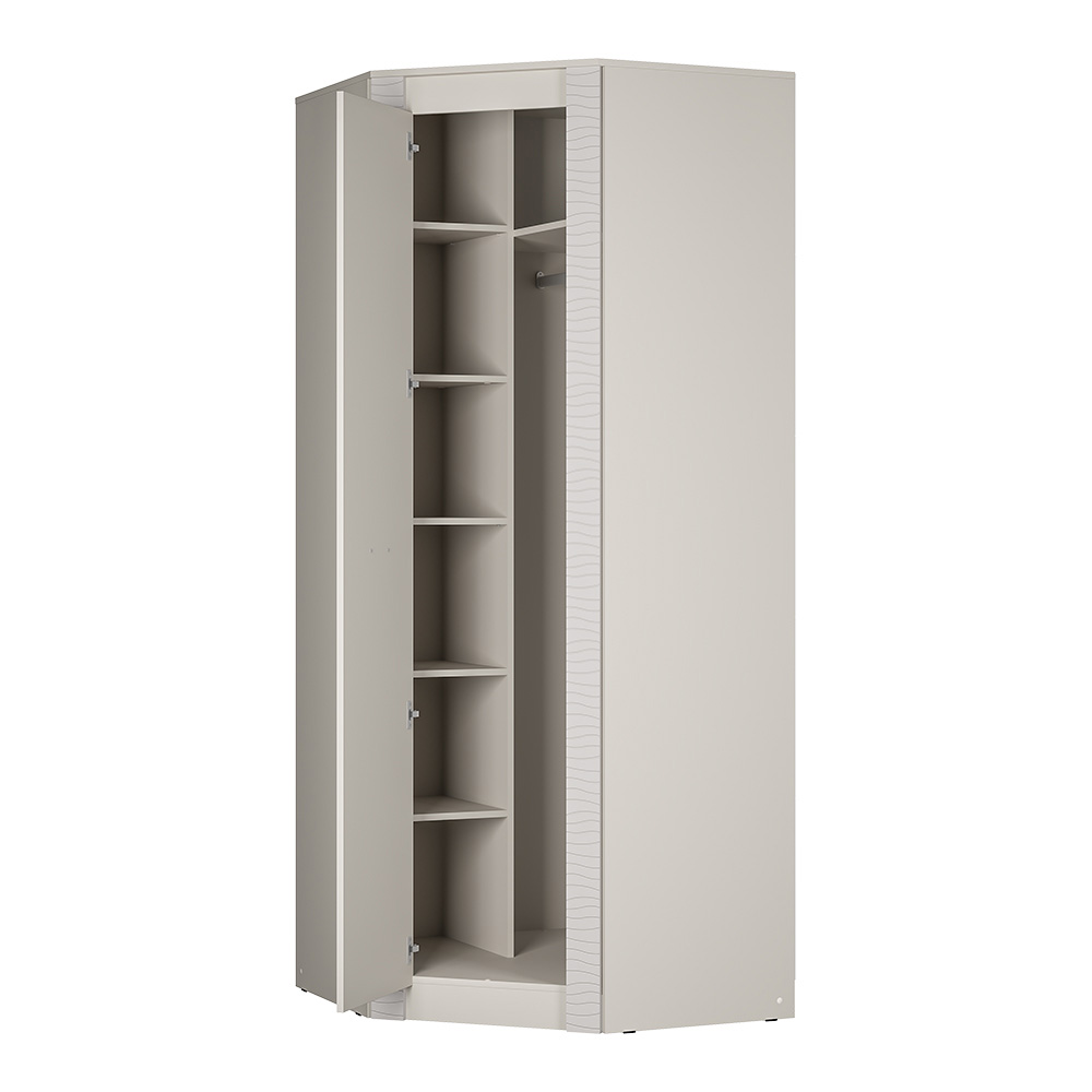 Угловой шкаф "Монако" ШК-42 относится к одноименной модульной серии. Модель не имеет вычурного декора и лишних деталей, выполнена в сдержанном и лаконичном стиле. Комплектация шкафа представляет собой несколько полок для хранения вещей в сложенном виде, а также отделение с хромированной штангой для одежды на вешалках. Для создания модели используется качественная ЛДСП цвета "кашемир". Габаритные размеры: высота – 2200 мм, глубина - 903 (490) мм, ширина - 903 (490) мм.