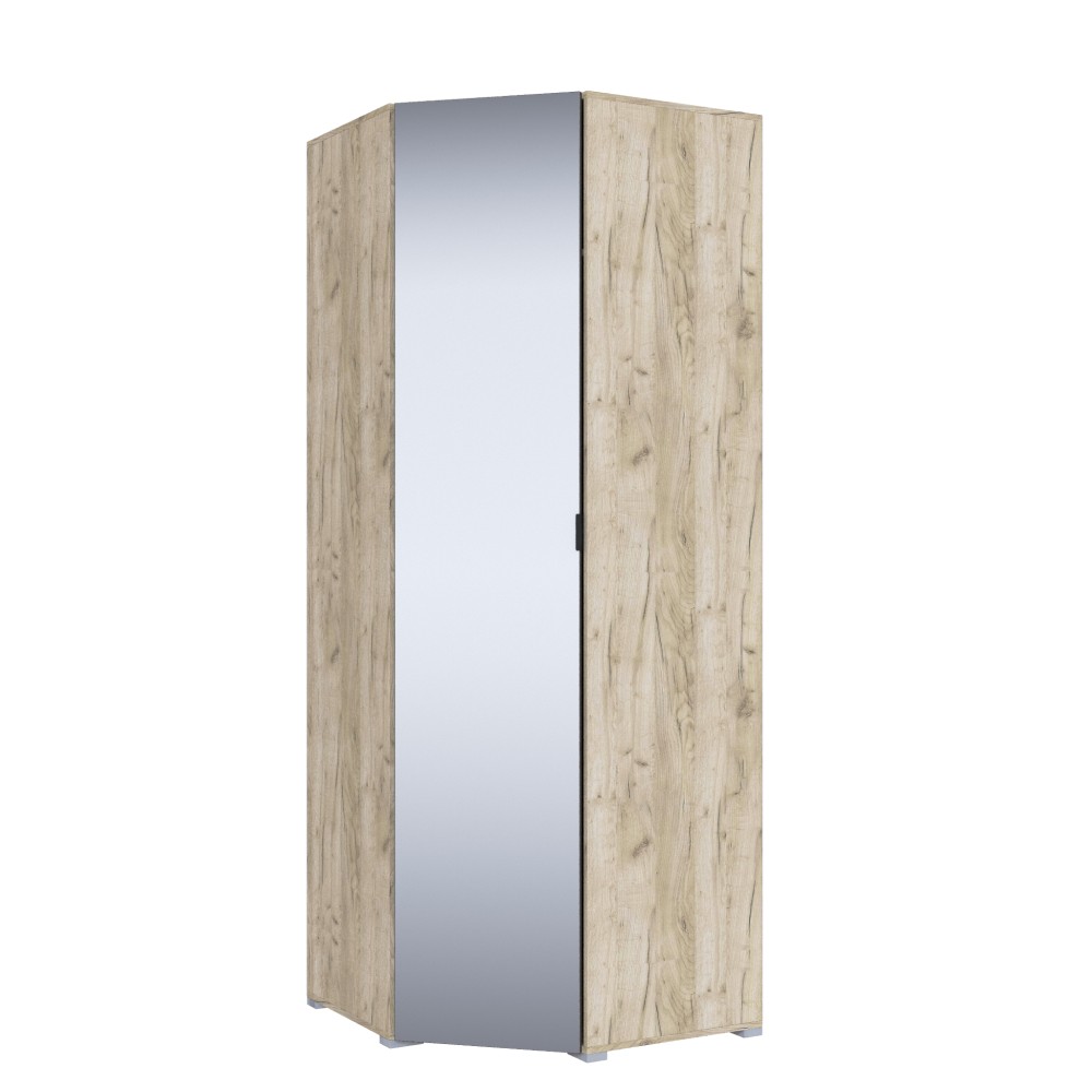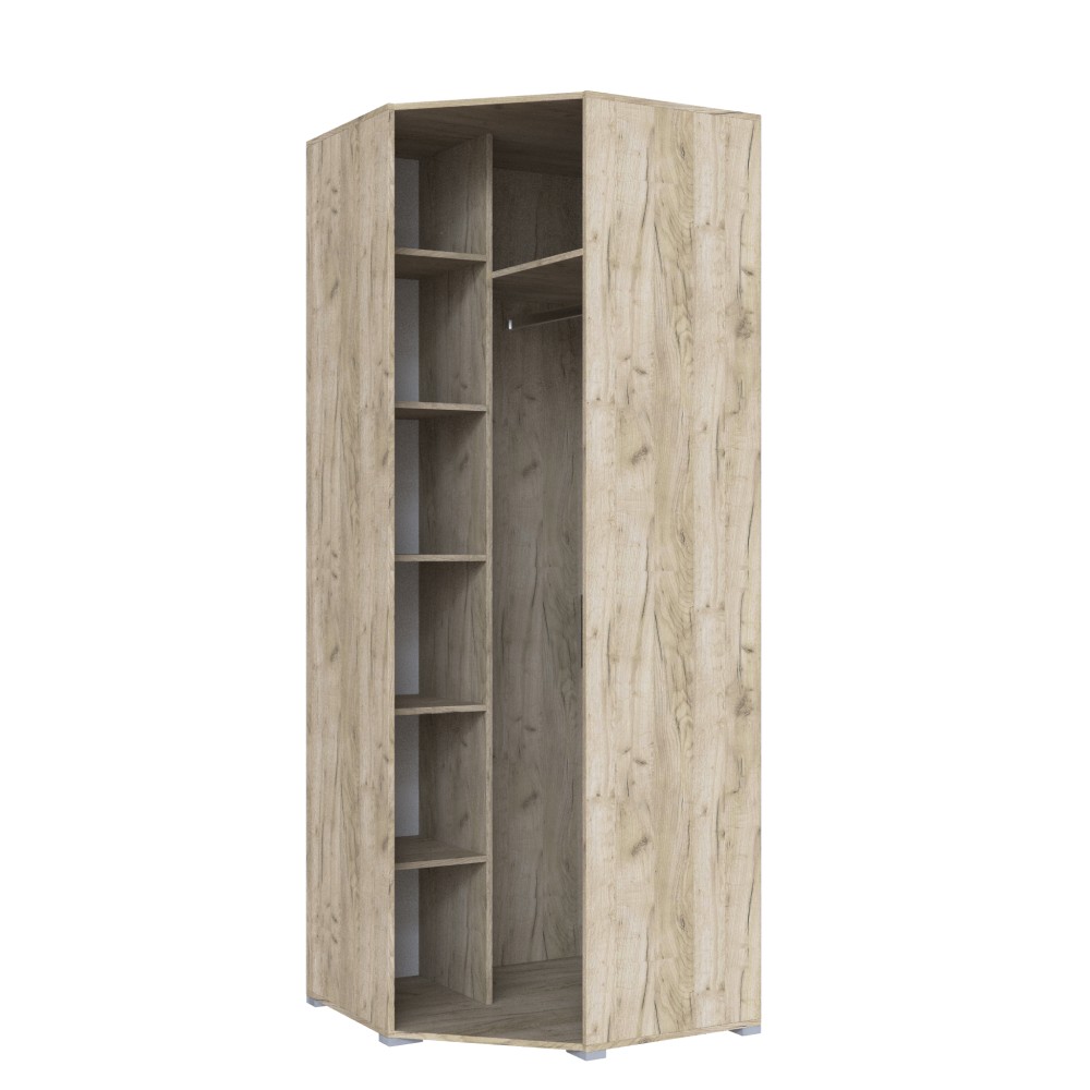 Угловой шкаф из коллекции Теана станет компактным, но при этом вместительным решением для хранения одежды на плечиках, вещей в сложенном виде и белья в спальной комнате. Имеет продольную штангуи комплект полок. За счет угловой конструкции позволит Вам использовать свободный угол в спальне в пользой.