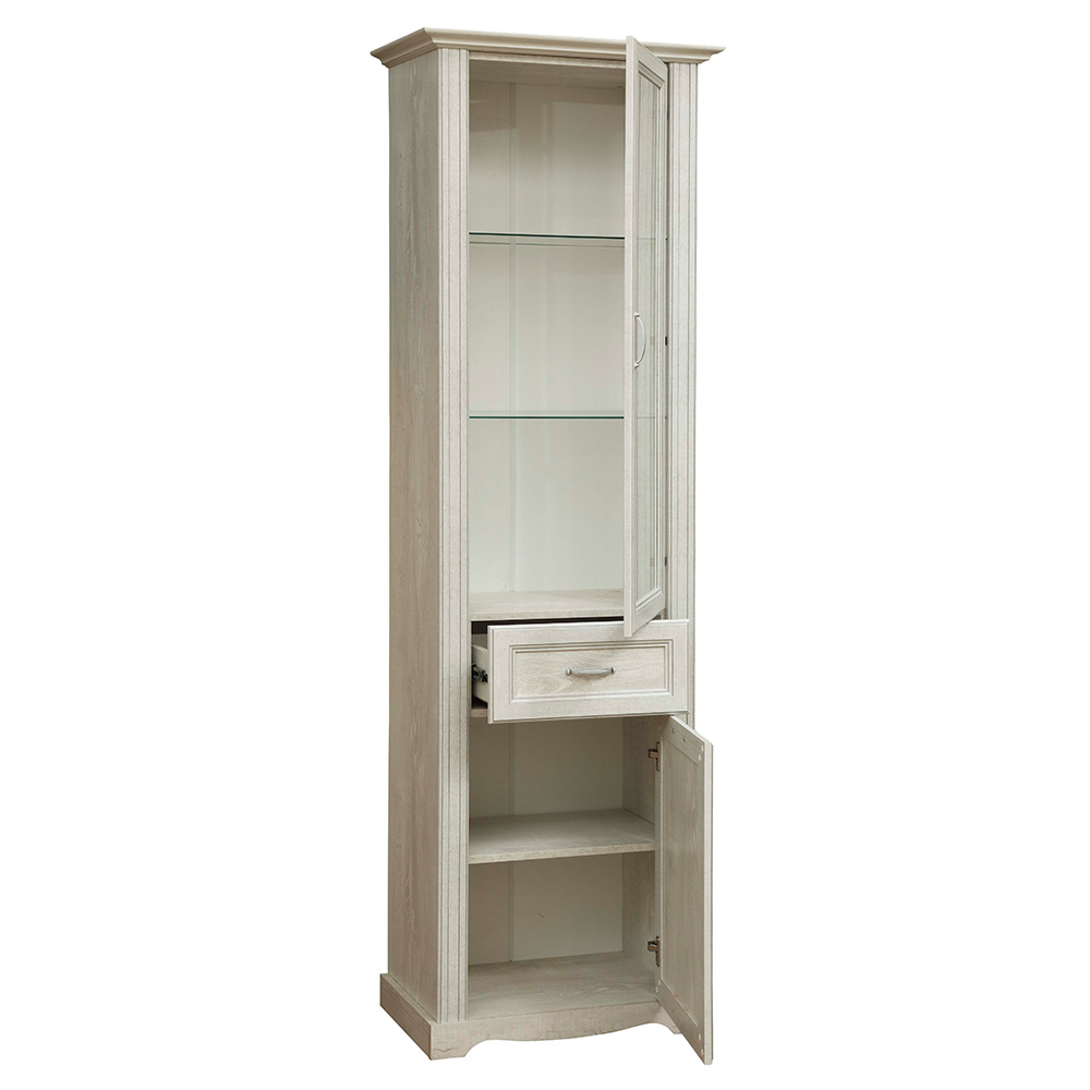 Шкаф витрина Сохо - это стильное и функциональное решение для вашего интерьера. Его элегантный дизайн создаст атмосферу свежести и простора. Этот шкаф оборудован удобными распашными дверьми с ручками, а также выдвижными ящиками на шариковых направляющих.